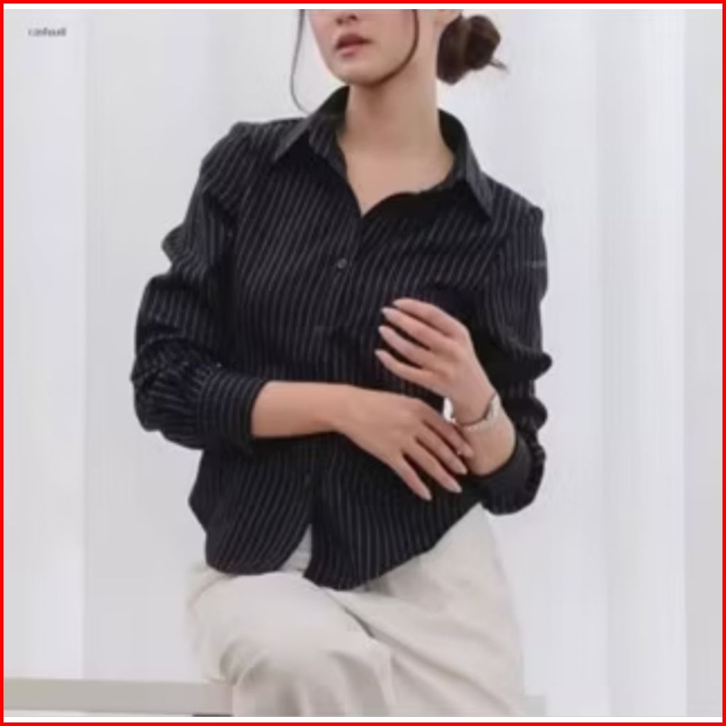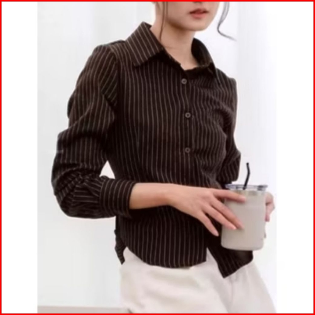 Noena Id - Luna Stripe Kemeja Fitted Premium - Atasan Wanita Korean Style