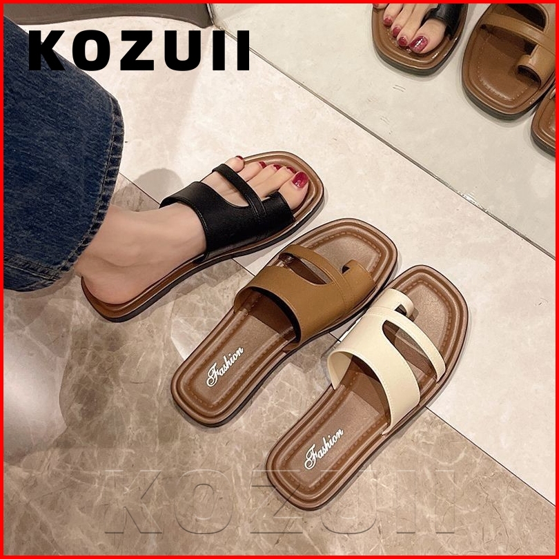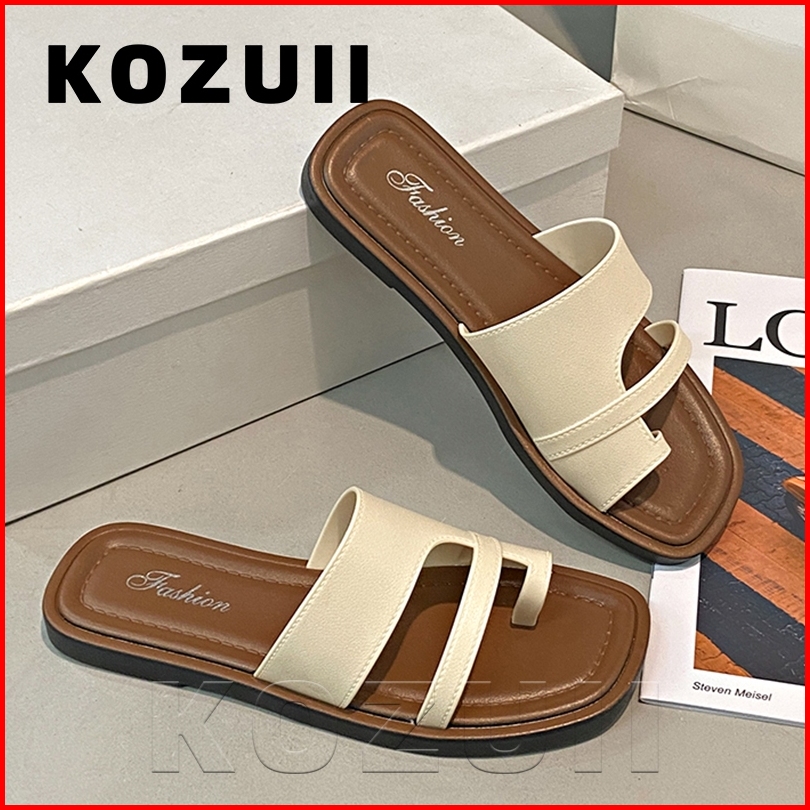Kozuii Sandal Wanita Jepit Jempol Tali Empuk Kulit Sintetis Anti Licin Sandal Teplek Kekinian Size 36 - 41