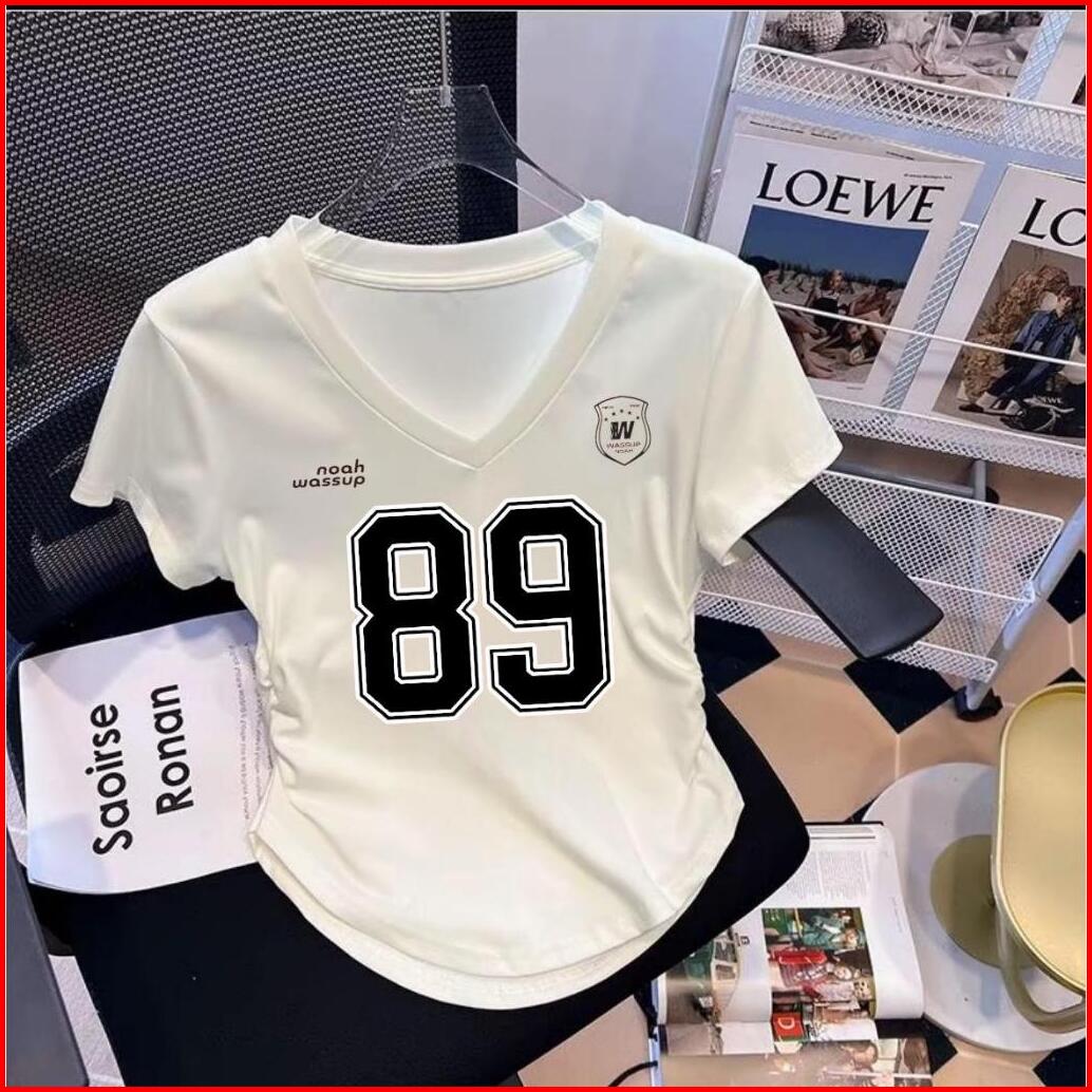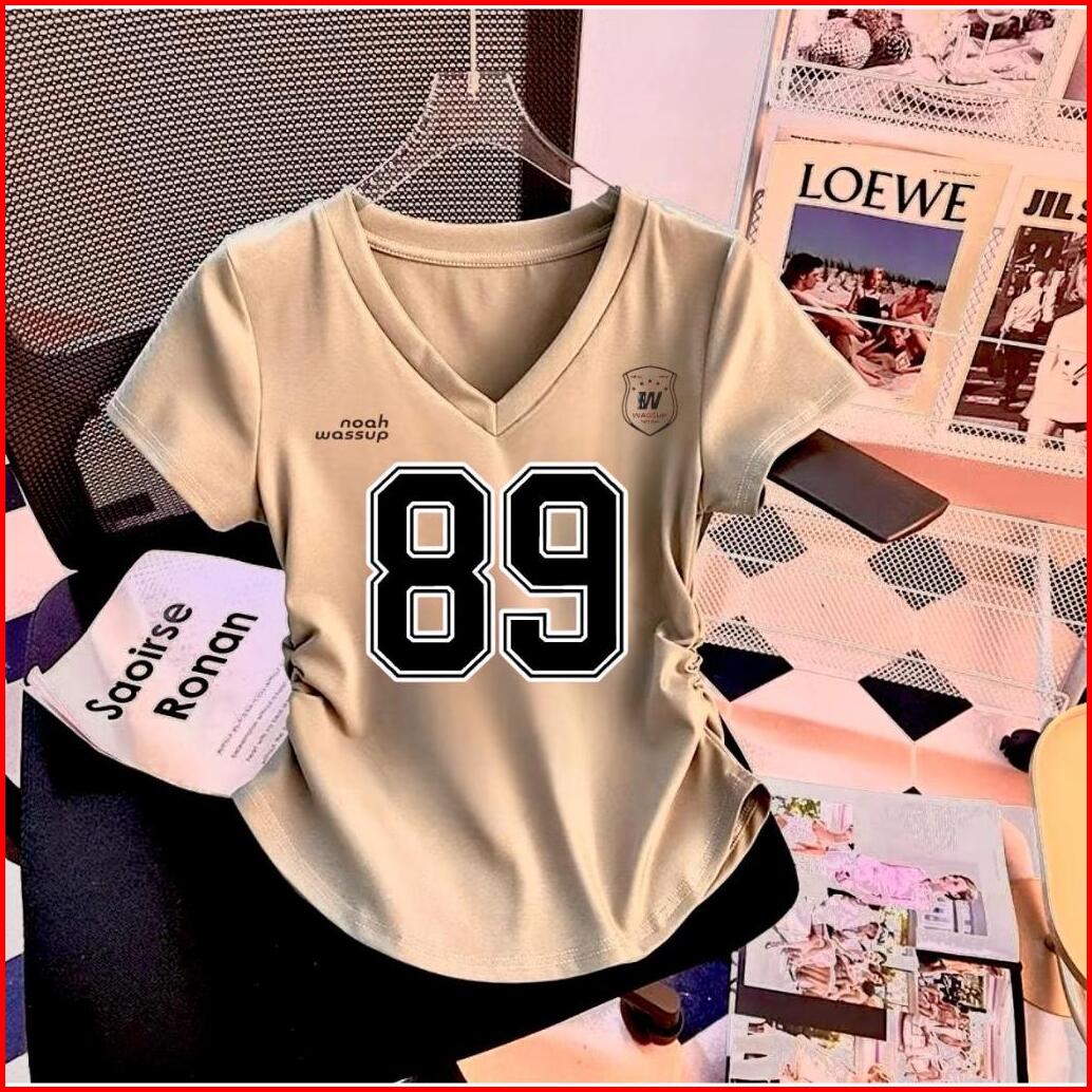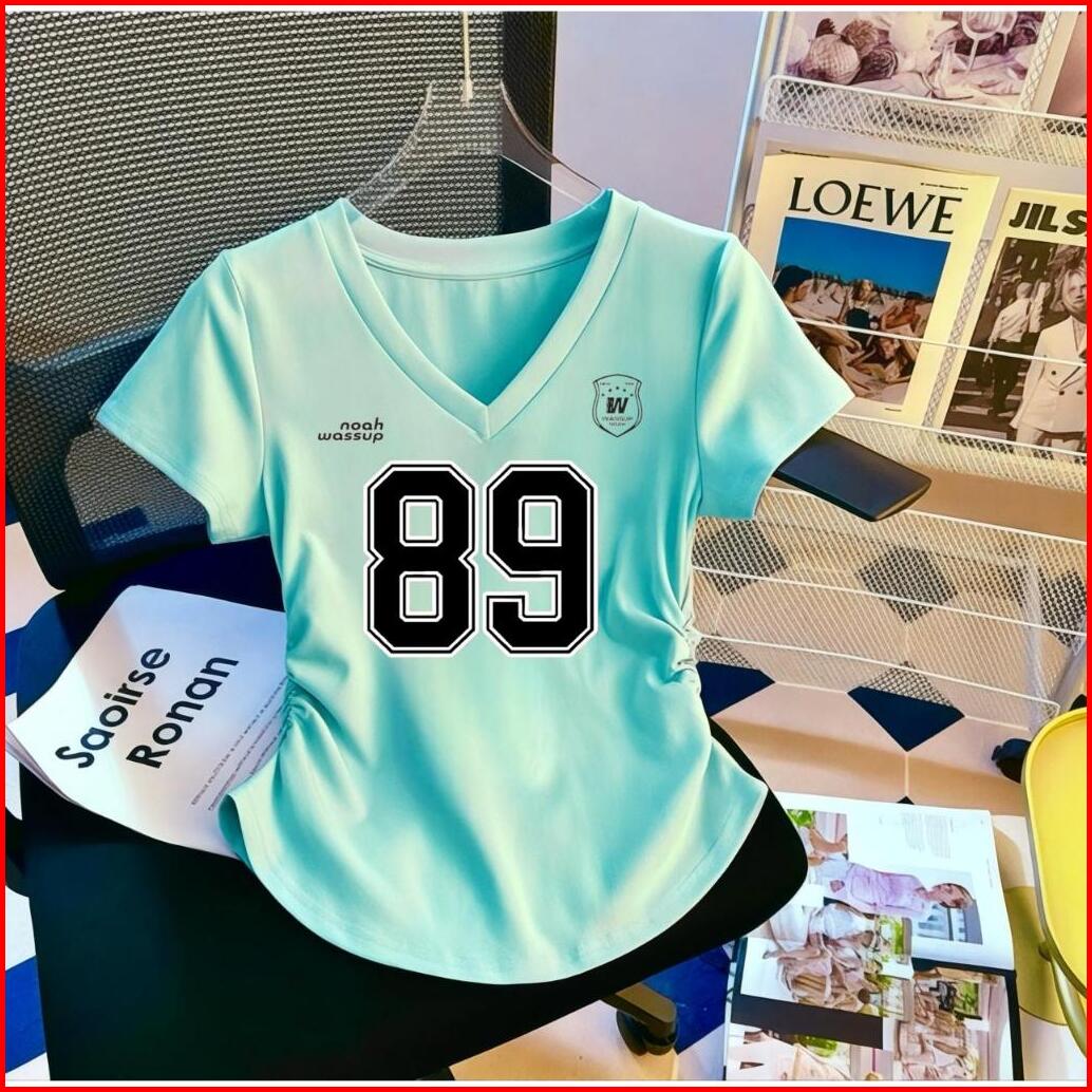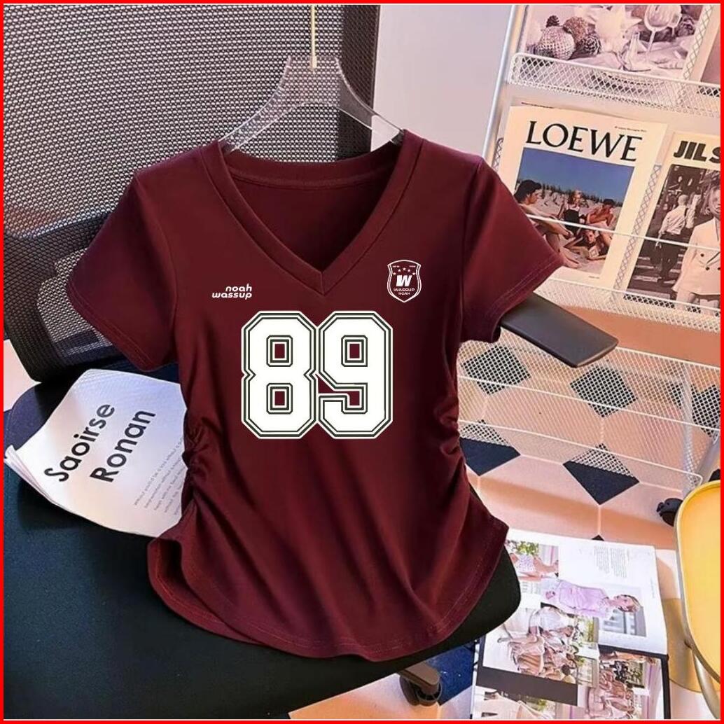 Atasan Kaos Wanita Kerut V Neck Terbaru Motif Angka Jersey Digital Printing Premium
