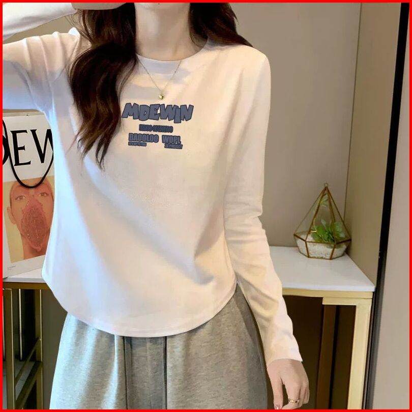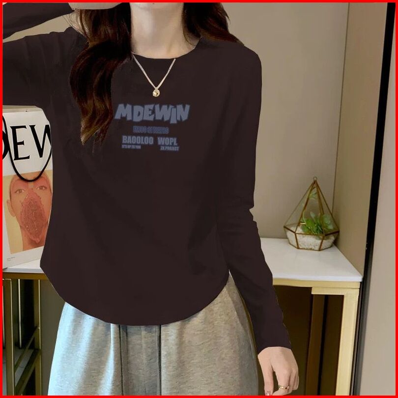 Baju Oblong Wanita Lengan Panjang Bahan Spandek Distro Printing Premiun Atasan Baju Kasual T-shirt