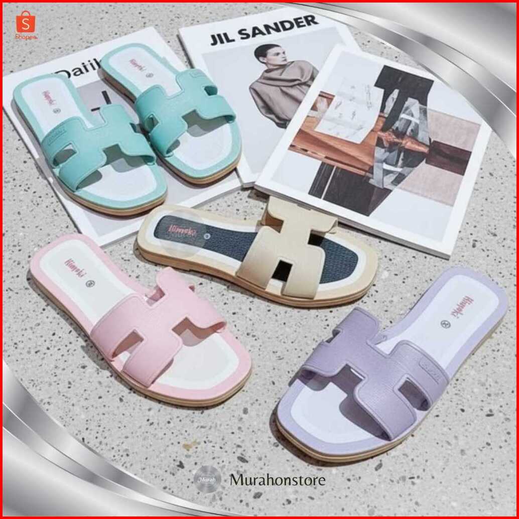 Himoki Viona - Sandal Korea Flat Wanita Kekinian Dan Terbaru Anti Air Anti Slip Awet