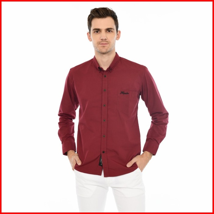 Hipster Kemeja Pria Lengan Panjang Polos Original Warna Merah Maroon