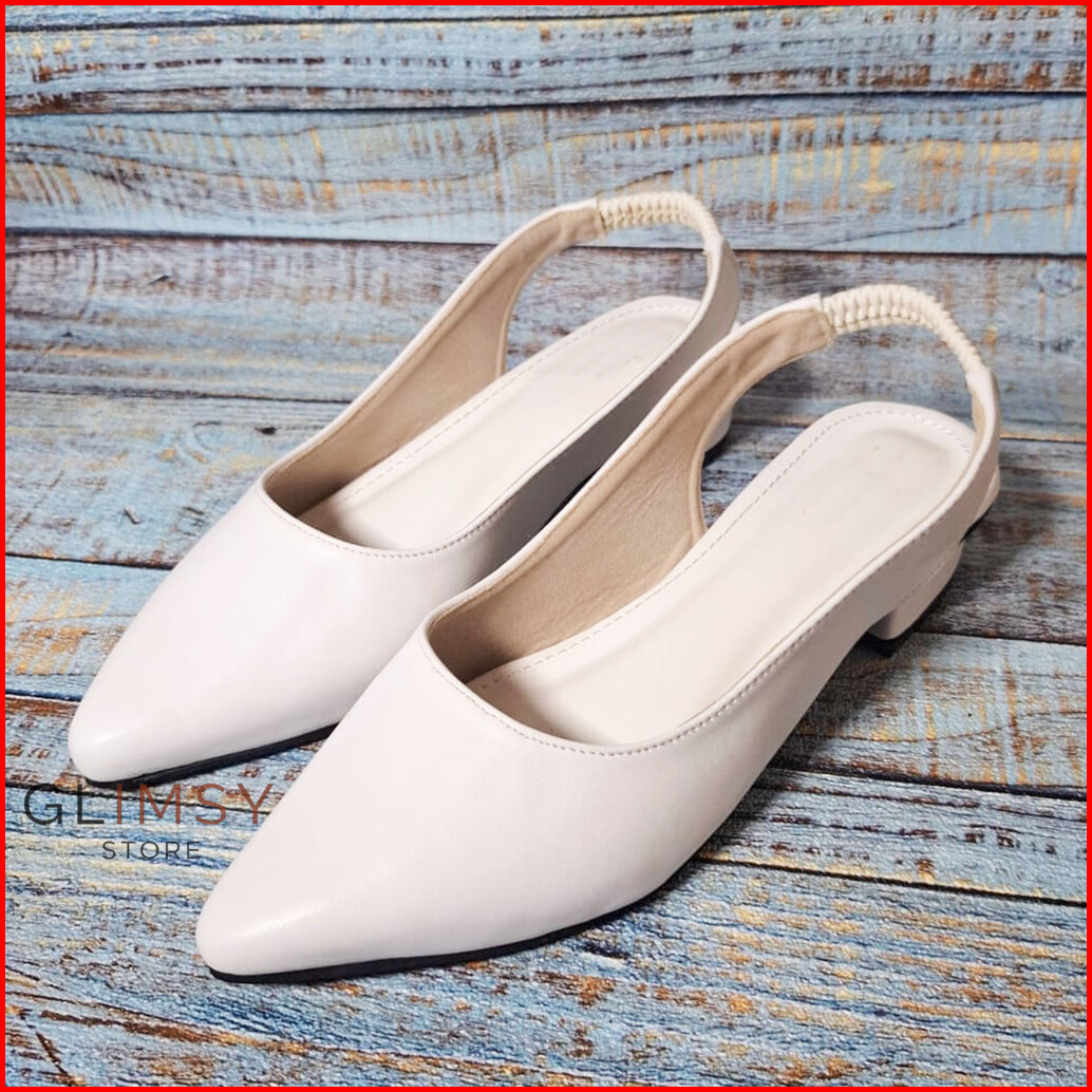 Sepatu Sandal Mules Korea Casual Hak Rendah 3cm Elegan Simple Polos Slip On Nyaman Untuk Dipakai Seharian