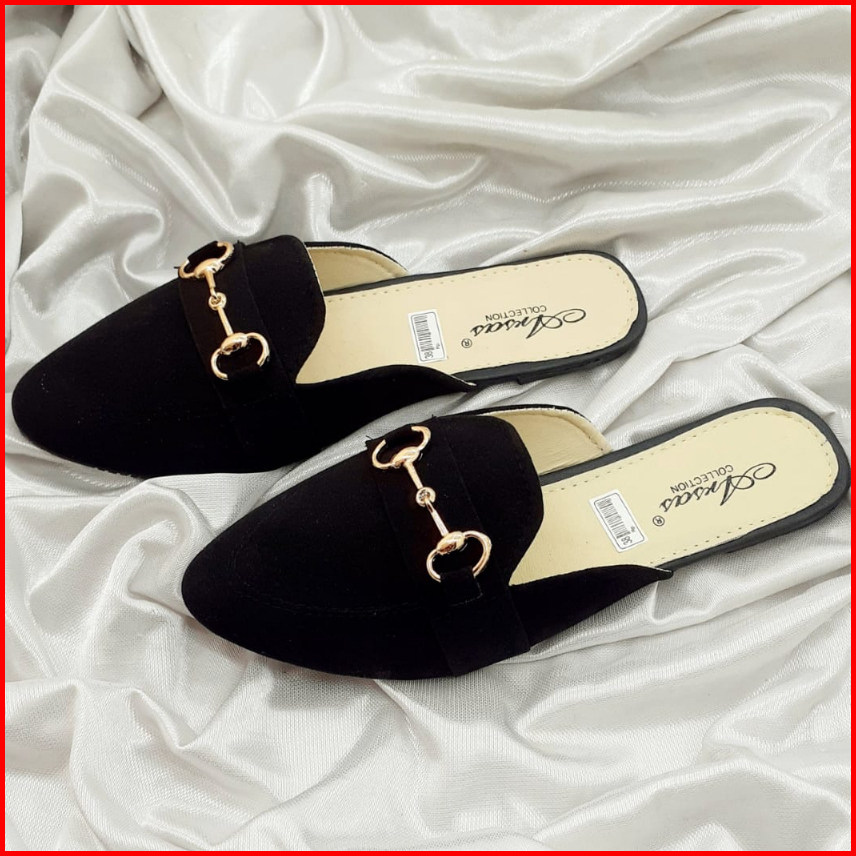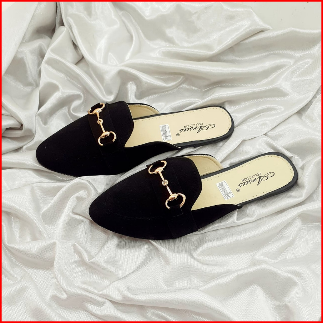 Sandal Sepatu Wanita Mules Anti Slip Sintetis Bahan Bludru