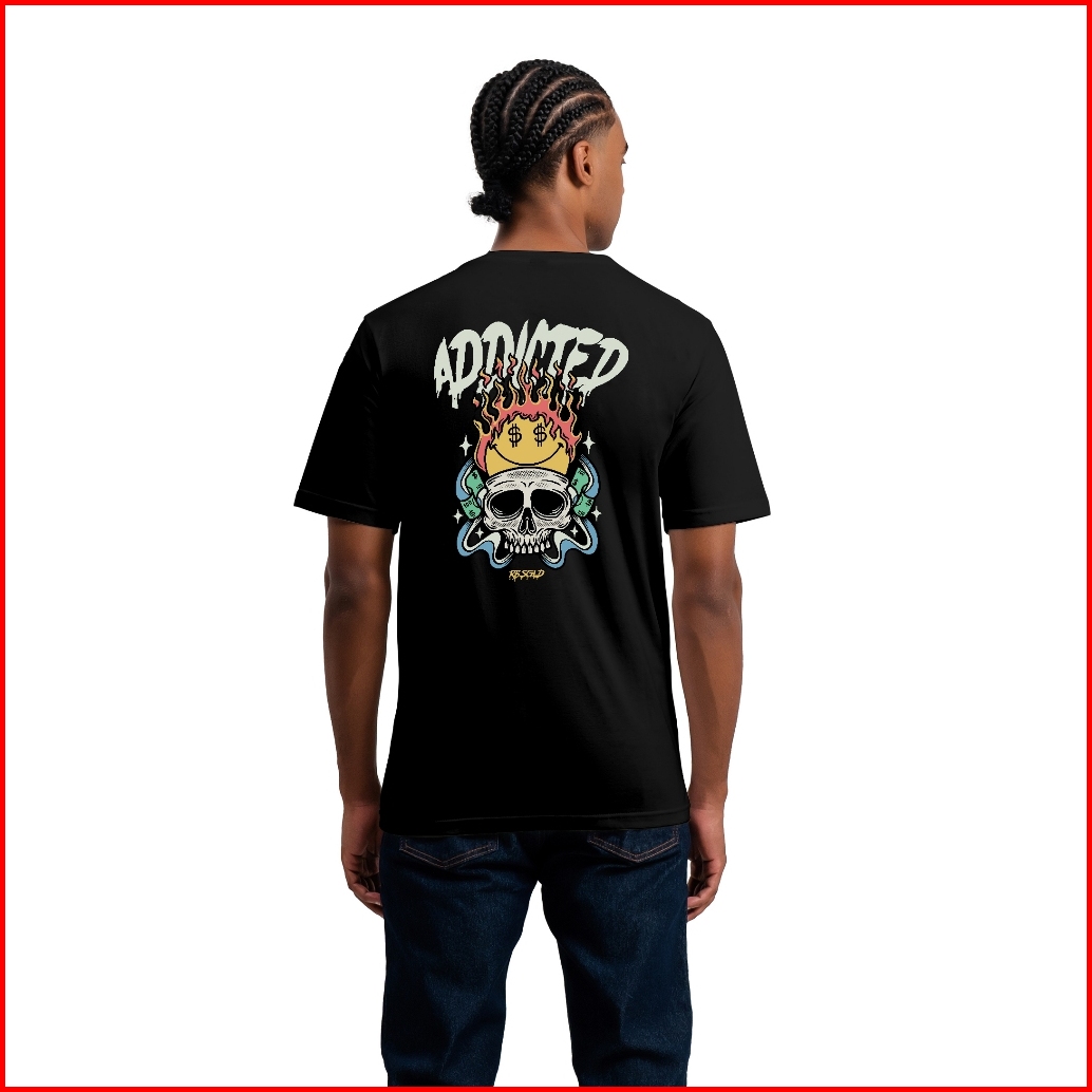 Kaos Pria Lengan Pendek Distro Skulladdicted Ribsgold Tshirt Cotton Katun Lembut Strech Grh