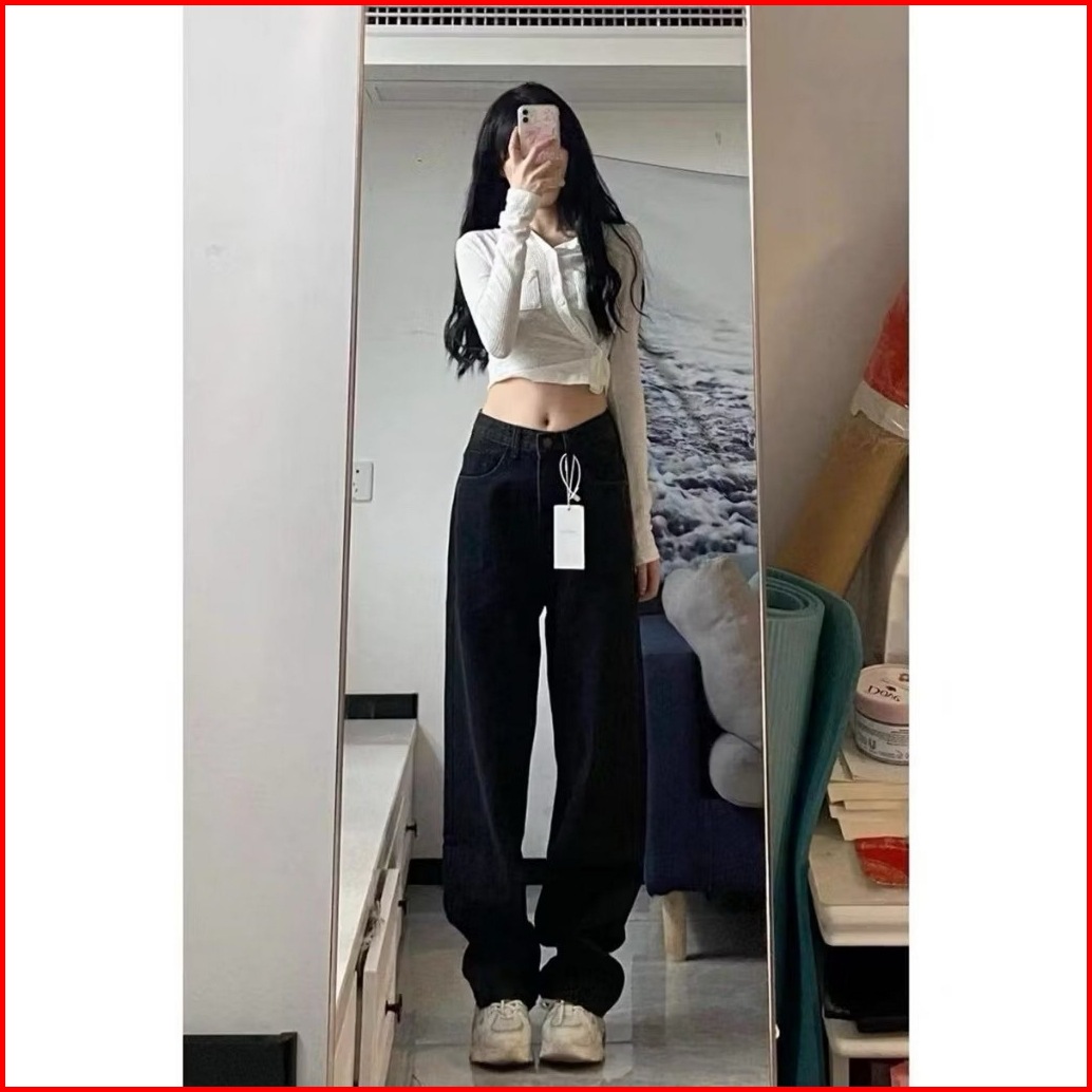 Lulu Jeans Celana Jeans High Waist Wanita Korean Style Jeans Baggy Pants Serbaguna Kasual Biru Retro 27-38
