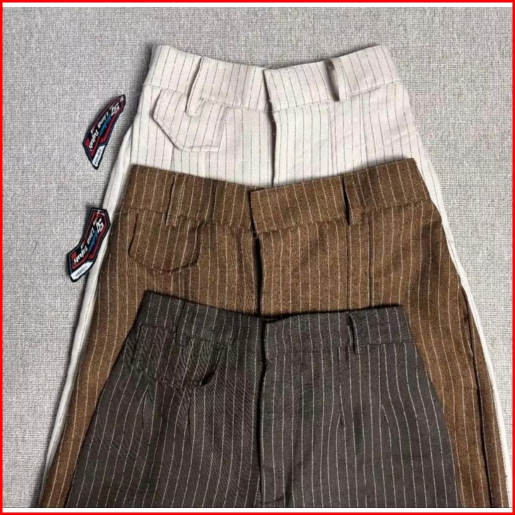 Oro Pants Stripe Bangkok Kekinian - Celana Wanita Murah Anti Kusut - Celana Panjang Wanita Highwaist Korea
