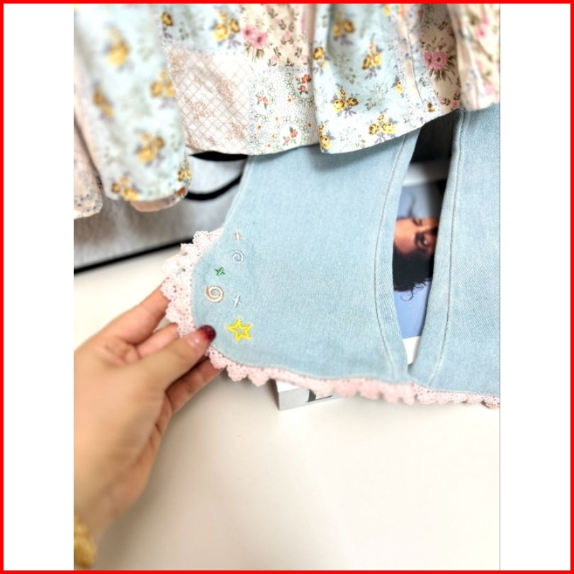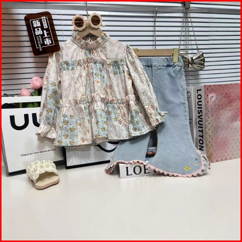 B20251- Blouse Bunga Anak Cewek Baju Setelan Anak Cewek Baju Lengan Panjang Celana Jeans
