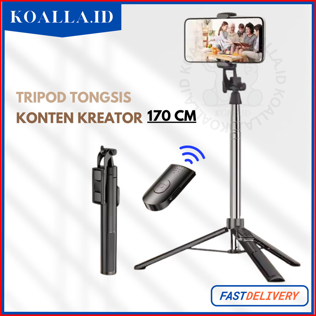 170cm Tripod Tongsis Remote Bluetooth 4in1 Led Selfie Stick 1.7 Meter Rotasi 360 Derajat Tripod Hp