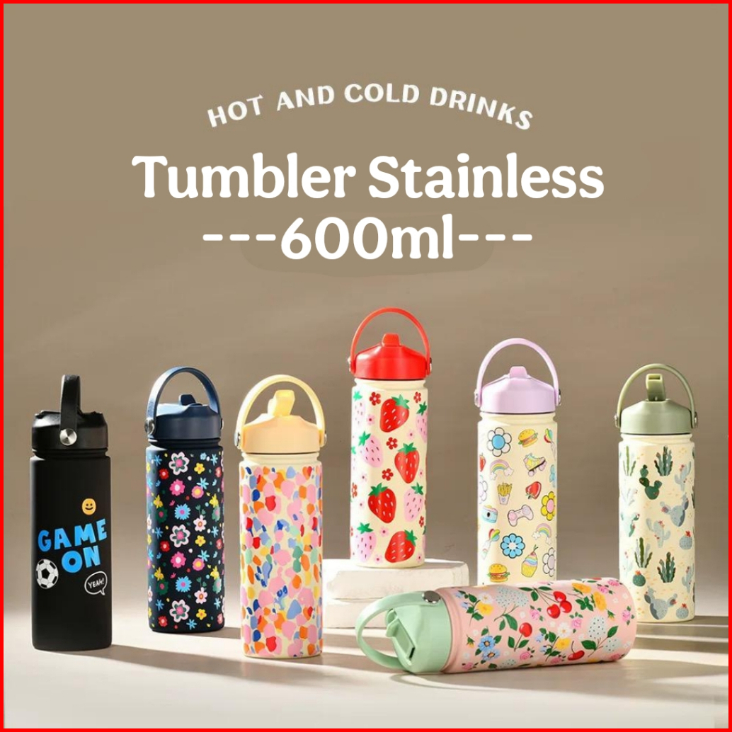 Tumbler Flip Straw Termos Karakter 600ml Kids Insulated Bottle 18 Jam Tahan Panas Dingin Anti Tumpah