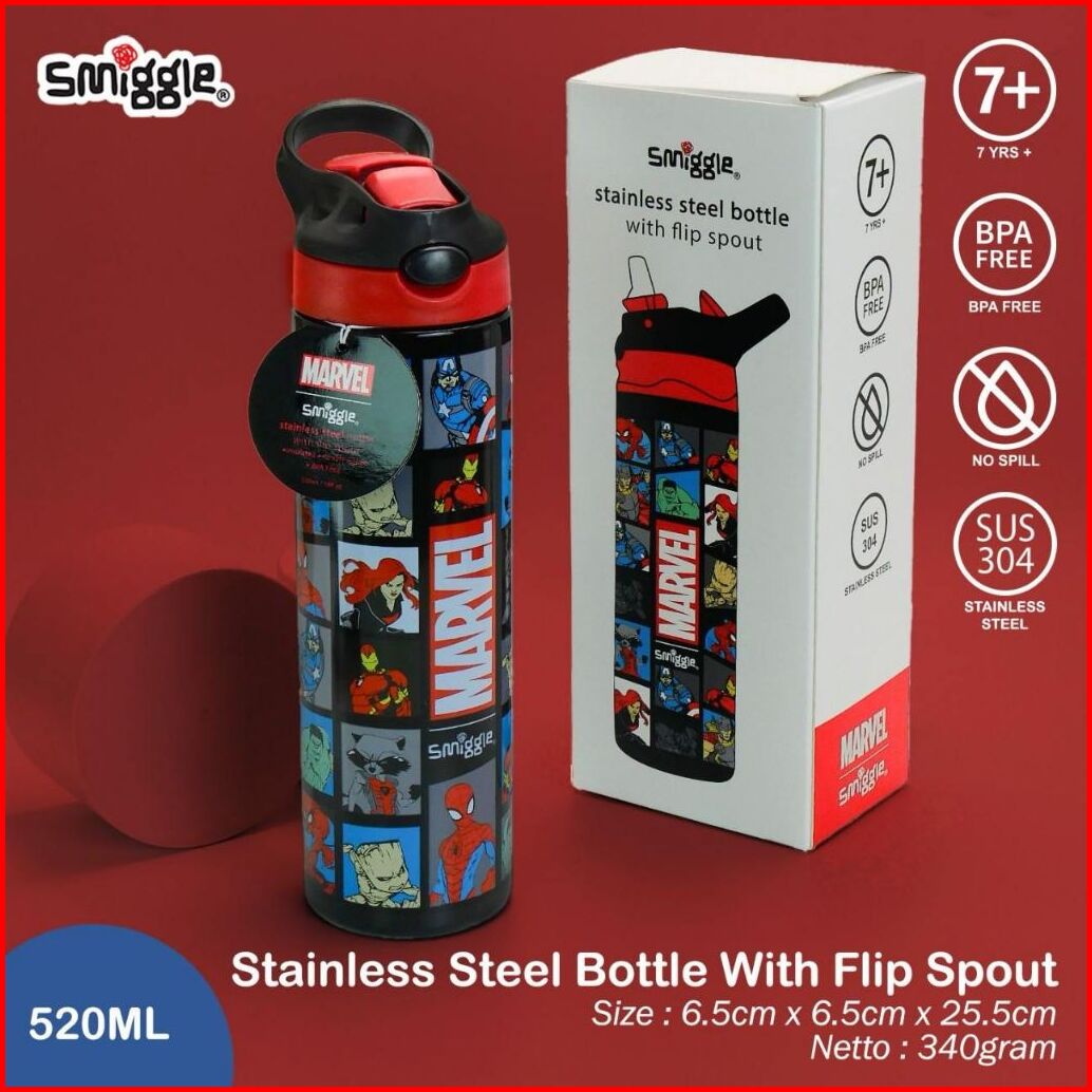 Botol Minum Stainless 520ml Karakter Marvel Minecraft Spiderman Ariel