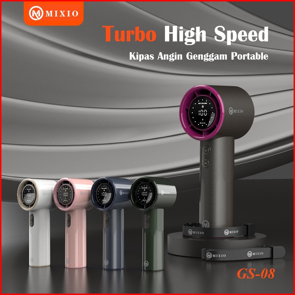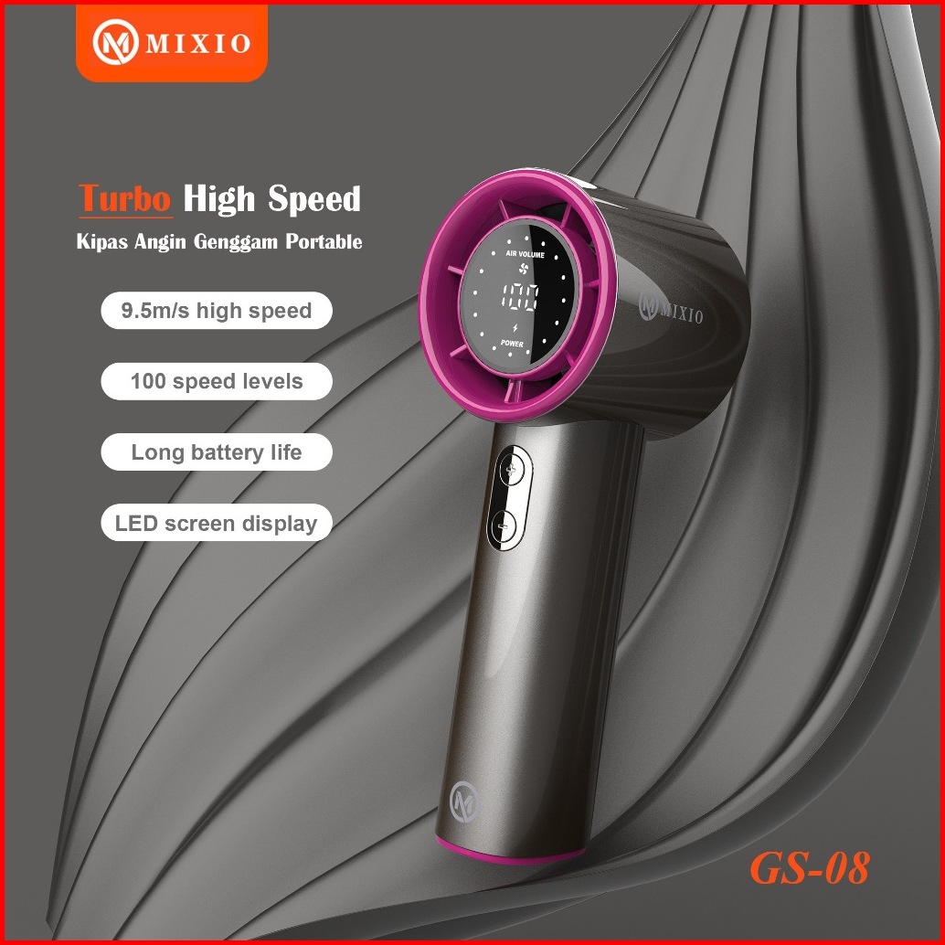 Aff Mixio Gs-08 High-speed Portable 17000rpm Handheld Fan 4400mah Mini Kipas Strong Wind 100 Gear Wind Speed Kipas Angin