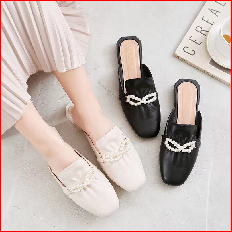 Sandal Slip On Flat Wanita Slop Loafers Casual Import Kekinian Motif Mutiara Korean Style Cewek Spt-41