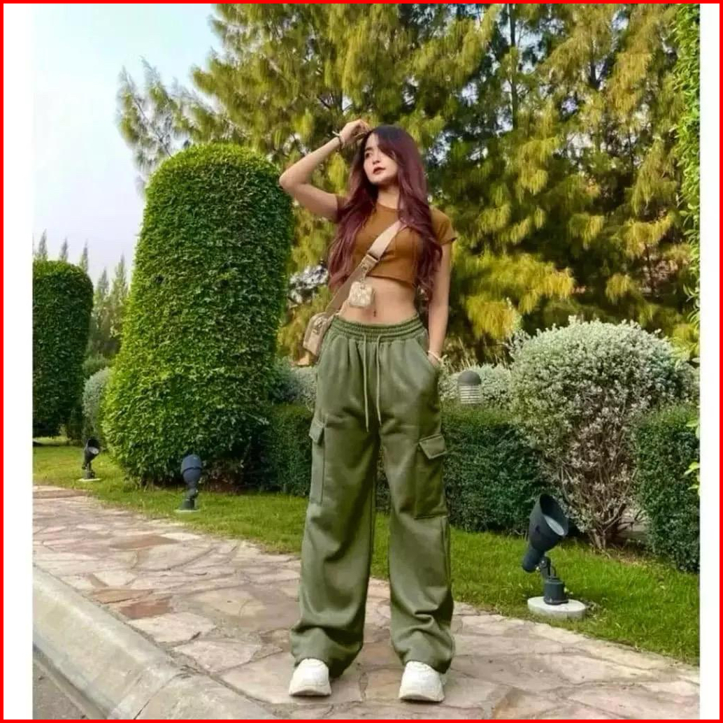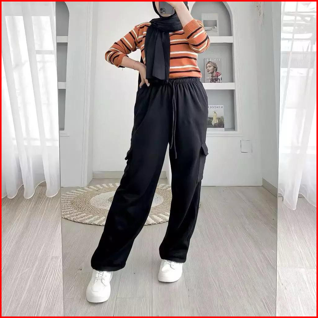 Swara - Ayzel Cargo Pants - Celana Kargo Korean Loose Pants Highwaist Panjang Wanita Casual Nyaman Tebal Lembut Kantong