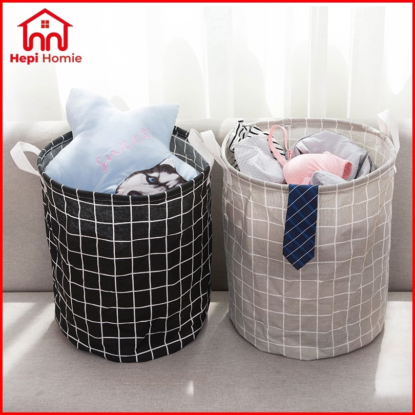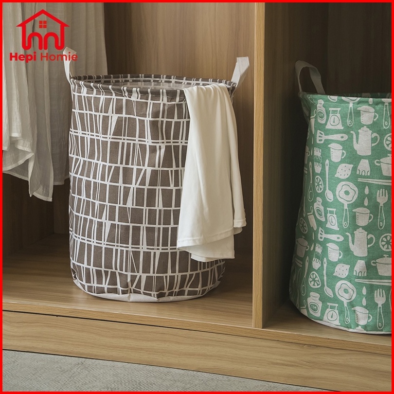 Hh Keranjang Laundry Baju Cucian Pakaian Kotor Bahan Kain Motif Bulat Lipat Basket Storage Bag