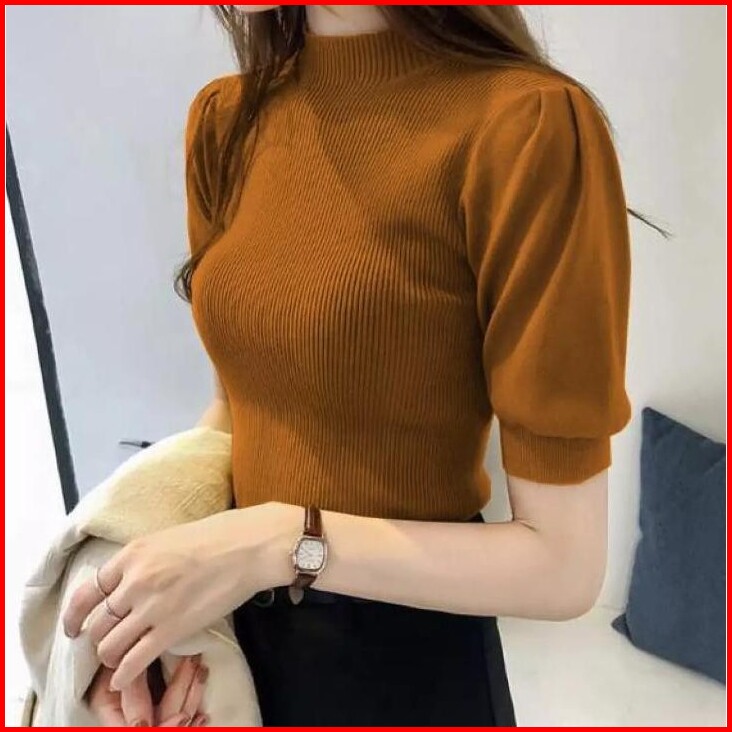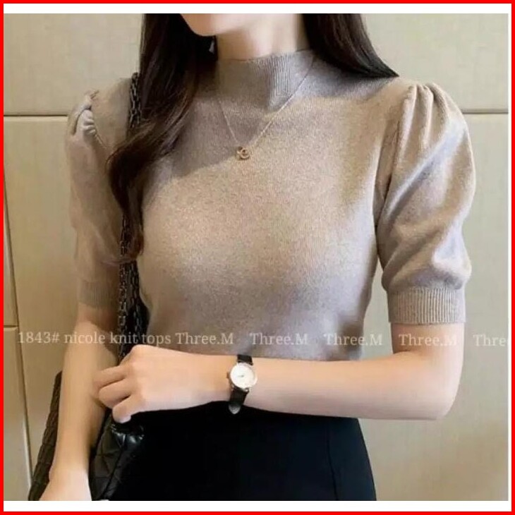 Nicole Knit Premium - Atasan Kerah Tinggi Wanita - Knit Tops