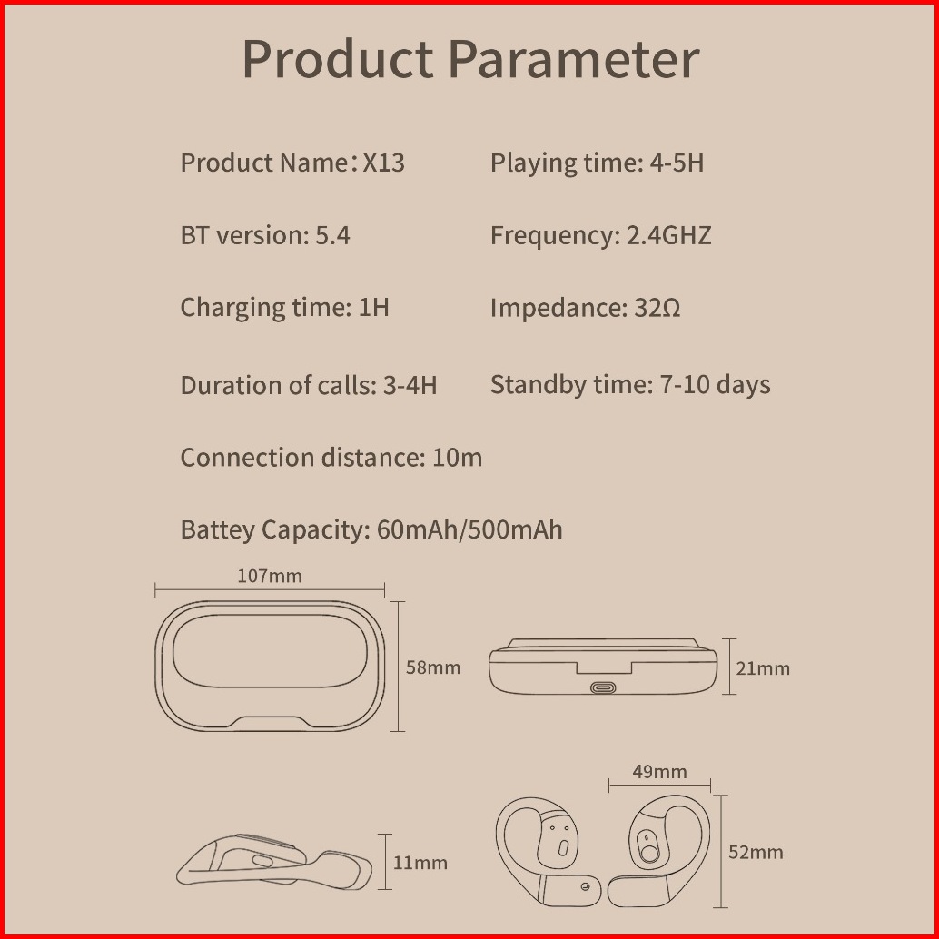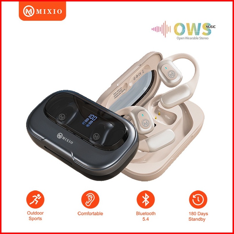 Mixio X13 Sport Open Ear Air Ows Bluetooth Earbuds 5.4 Ipx5 Waterproof Dual Enc Audio Open Wearable Stereo