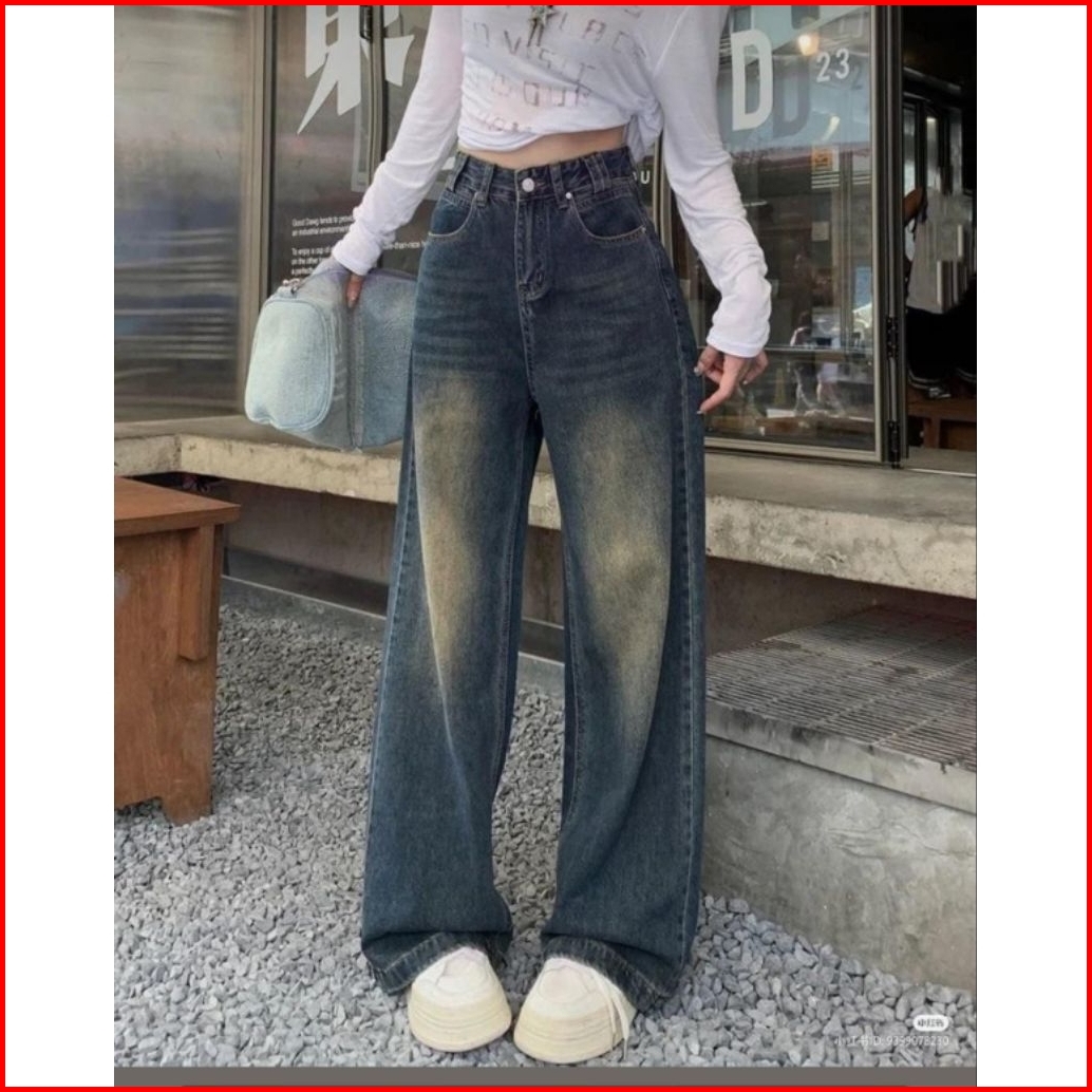 Remorus - Celana Kulot Jeans Highwaist Loose - Korean Baggy Jeans - Celana Gombrong Jeans
