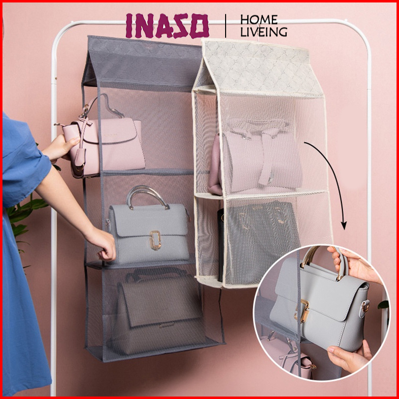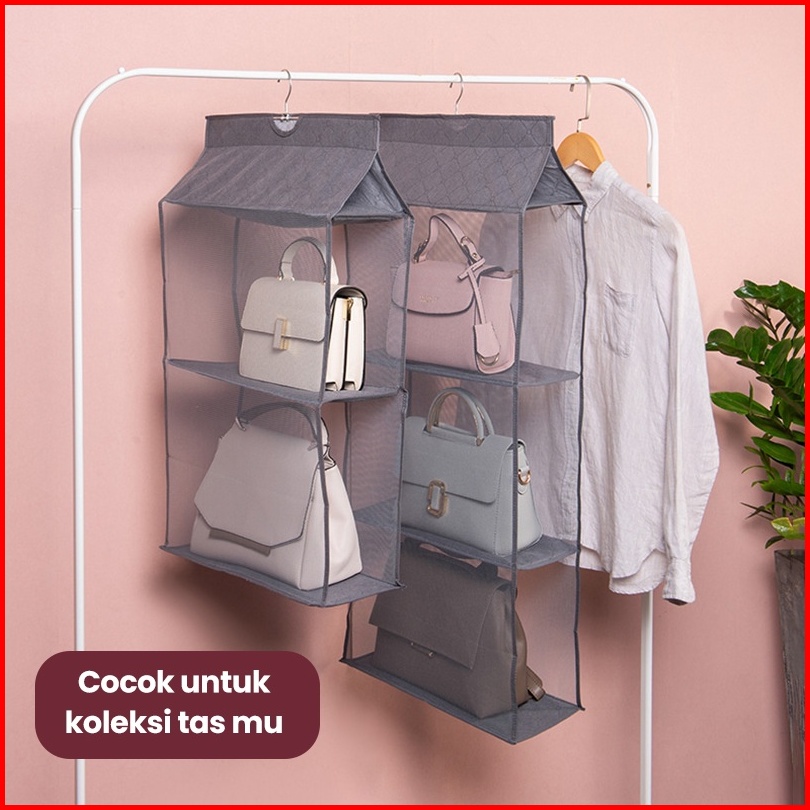 Inaso Rak Tas Mika Polos Anti Debu Rak Tas Gantung Rak Susun Bag Organizer Tempat Penyimpanan Tas Sepatu Hdk306