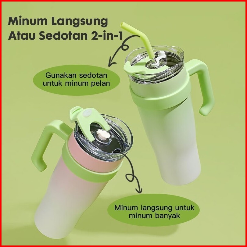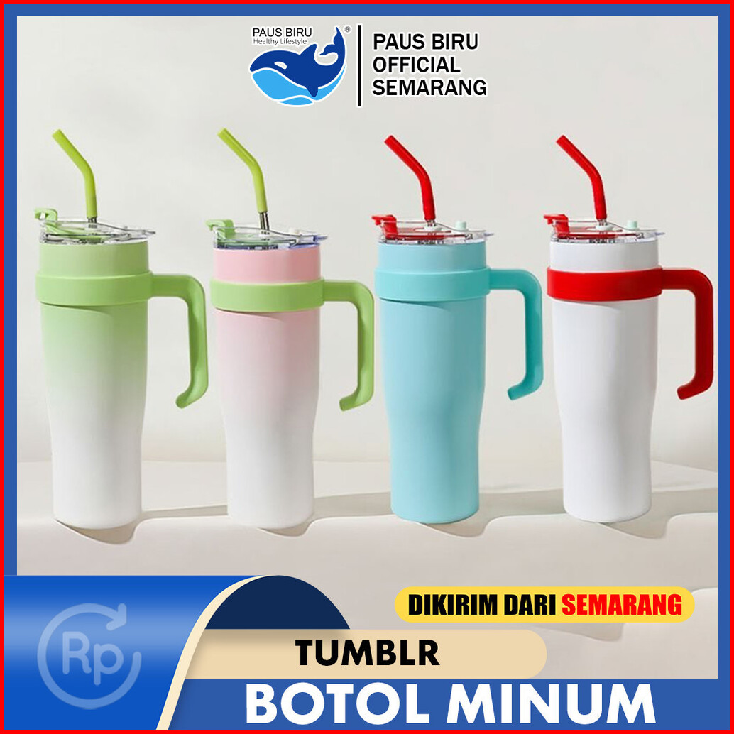 Paus Biru - Tumbler Stainless Steel Coffee Cup Botol 304 Mug Tahan Panas Dingin Kecil Portable Bpa Free 1200ml 1.2 Liter