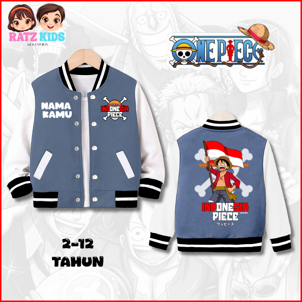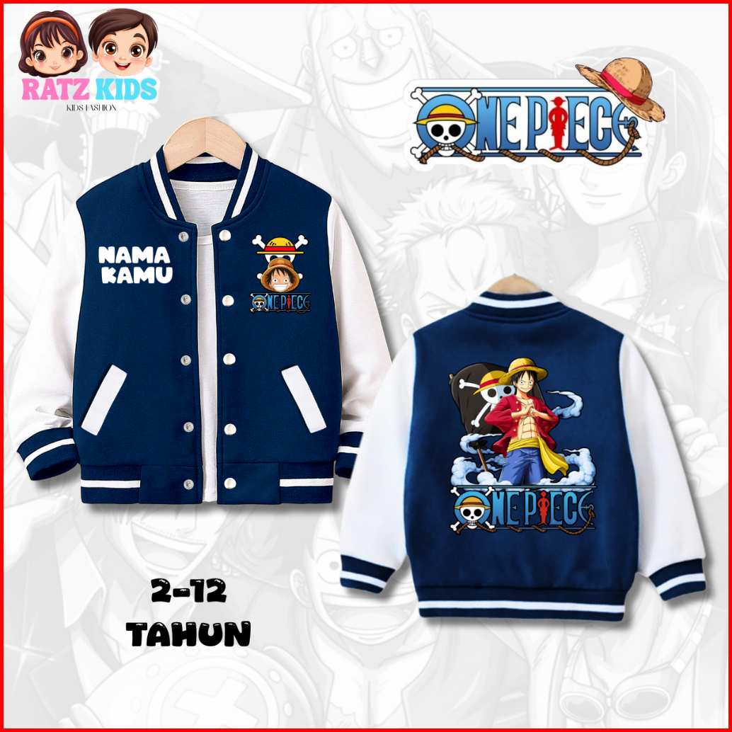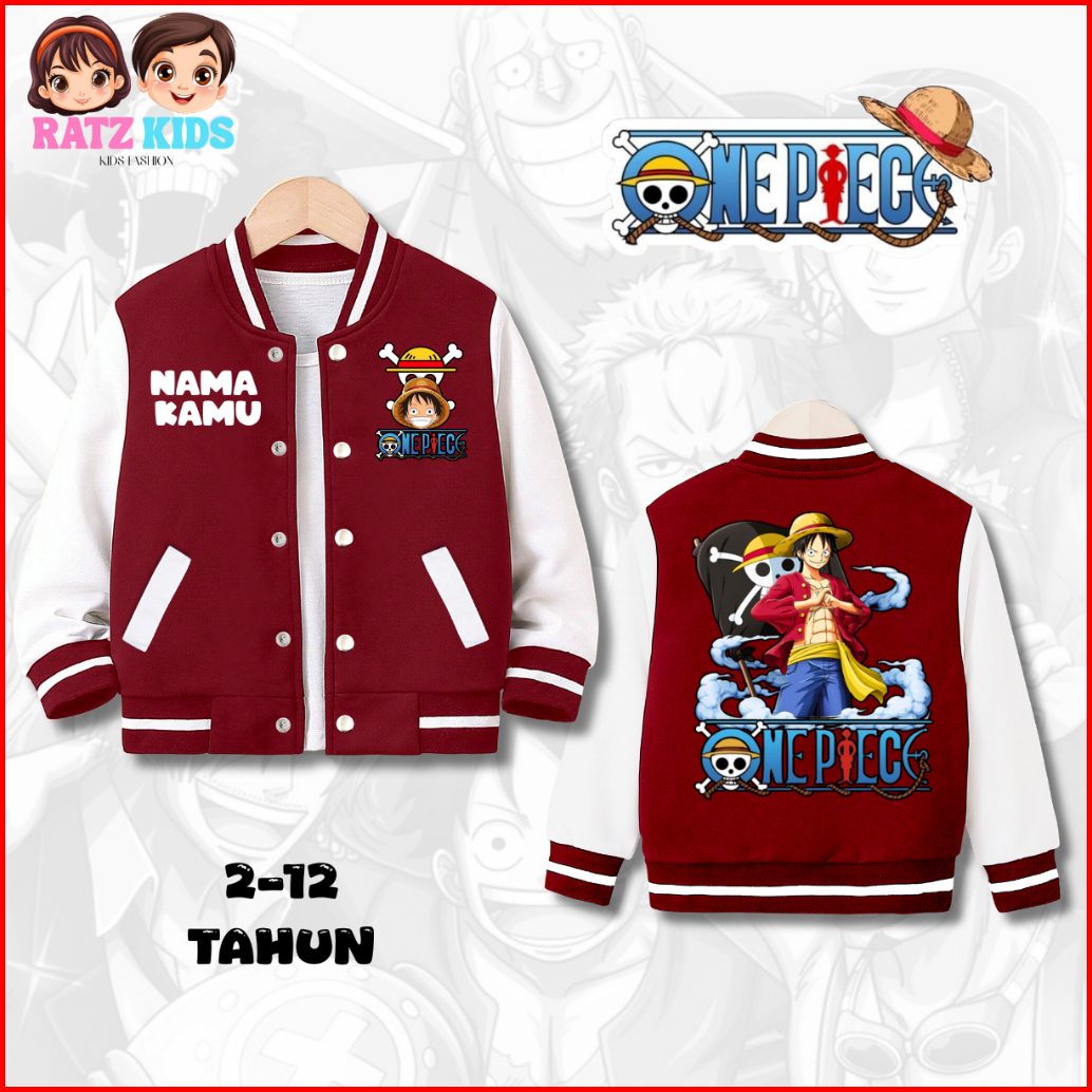 Ratz Kids - Jaket Baseball Varsity Anak Laki-laki Perempuan One Piece Free Nama Usia 2-12 Tahun