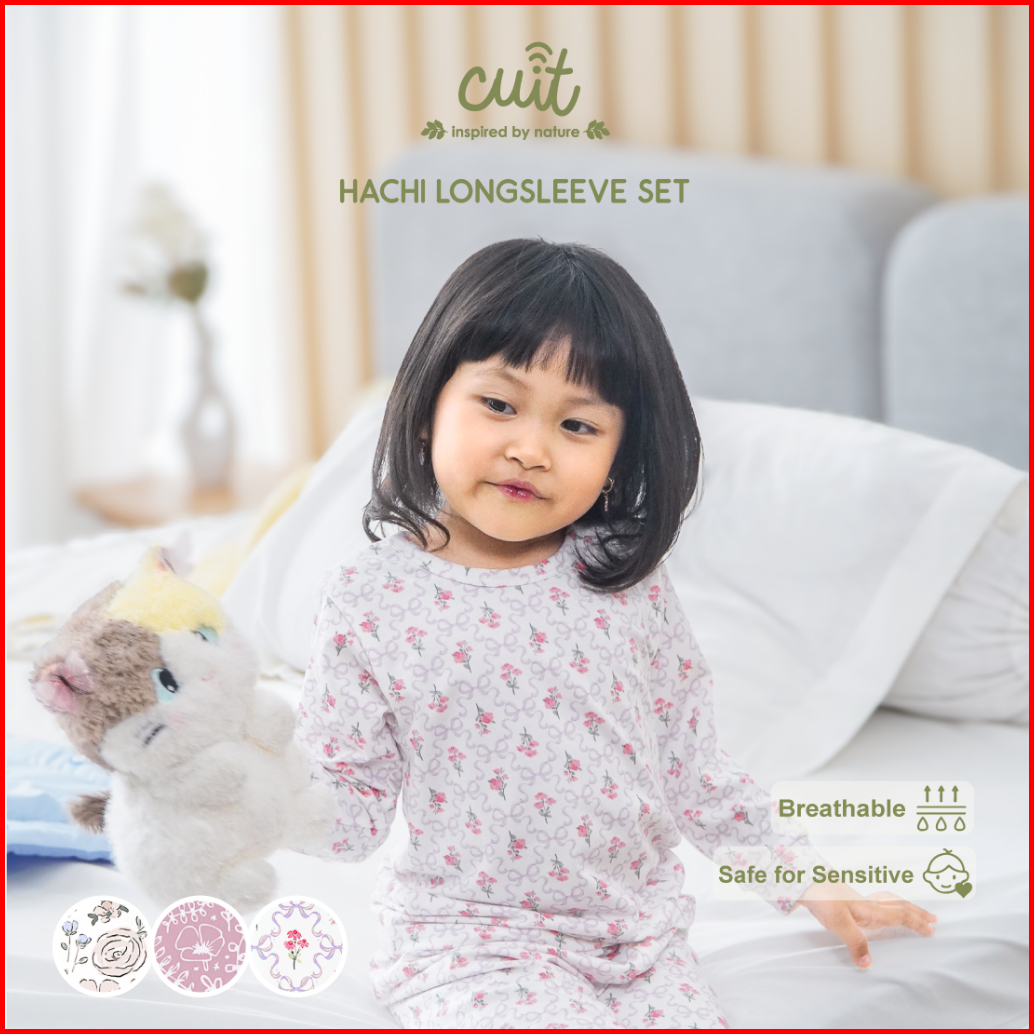 Produk Baru Cuit Hachi Setelan Anak Bayi 1 - 6 Tahun Tangan Panjang Celana Panjang Anak Motif Floral Bunga