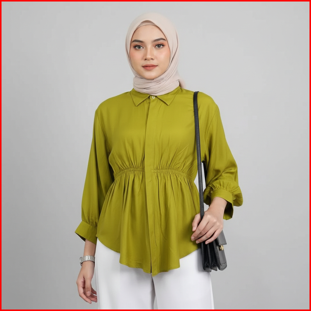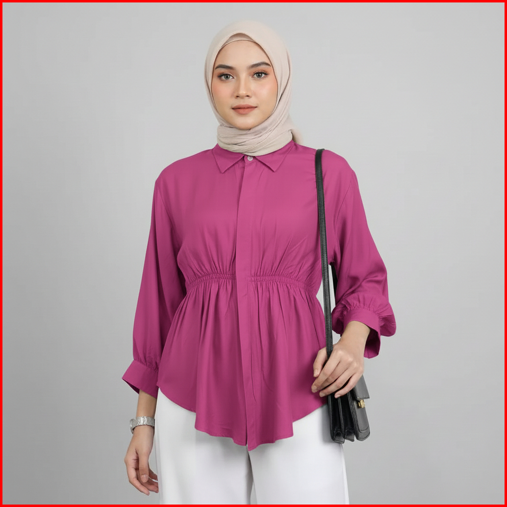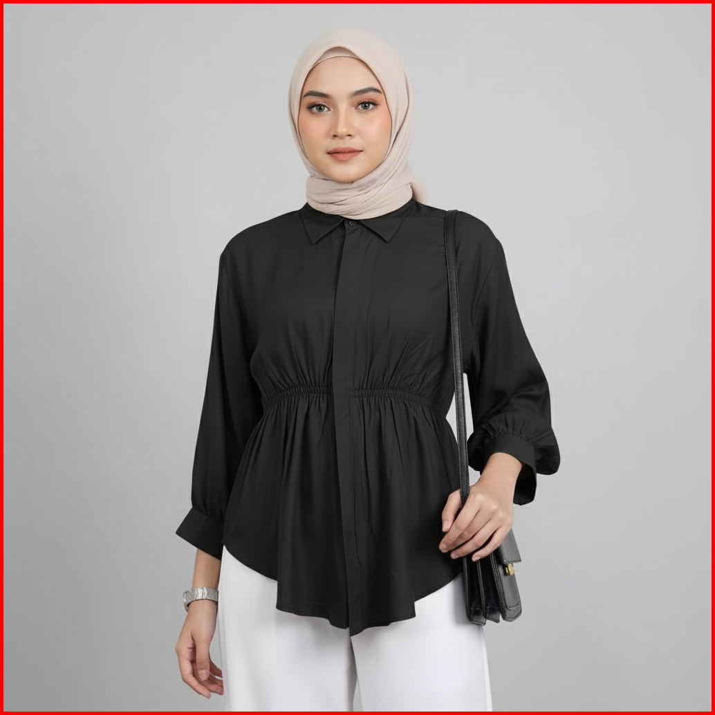 Shopataleen Nara Black Kemeja Wanita Chic Edgy Aiko Blouse Kerut Depan Model Kekinian Modis Nyaman