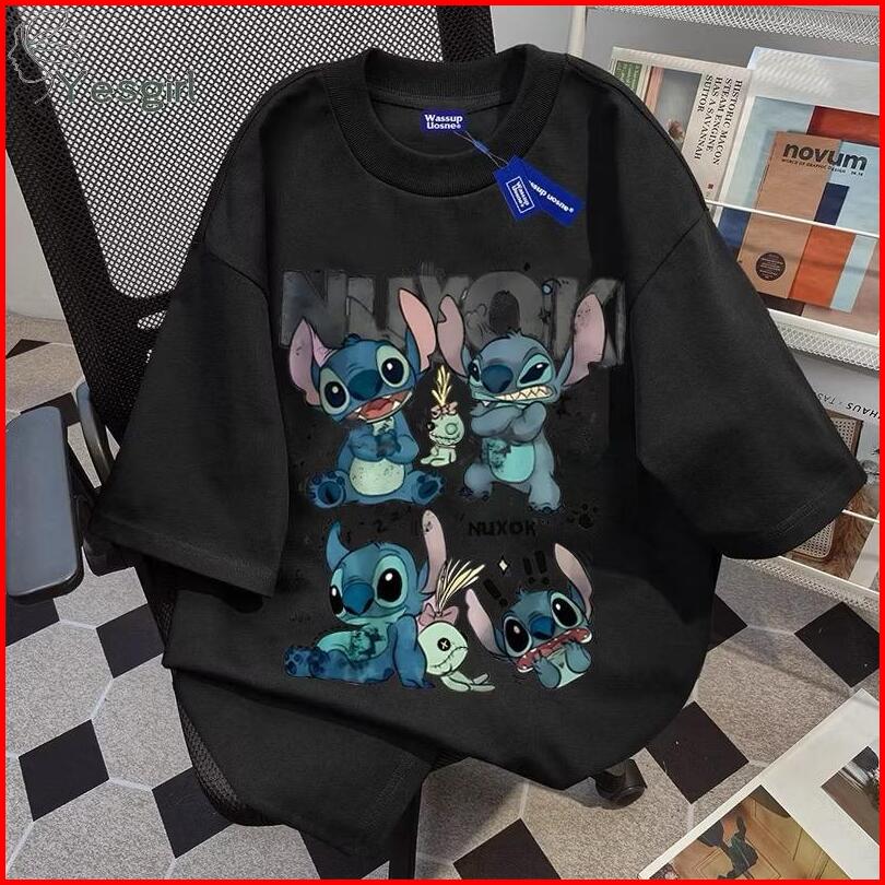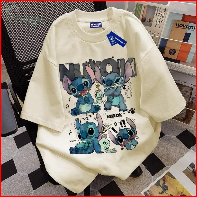 Kaos Korean Style Cartoon Stitch Print Kaos Kasual Kaos Fashion Korean Style Baju Oversize Wanita Kaos Katun Combed