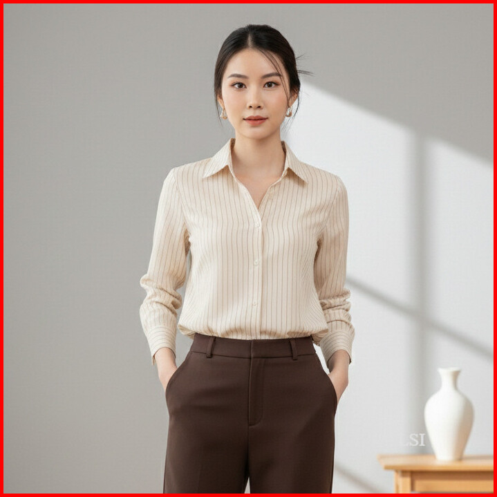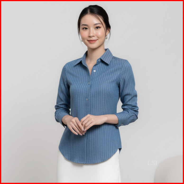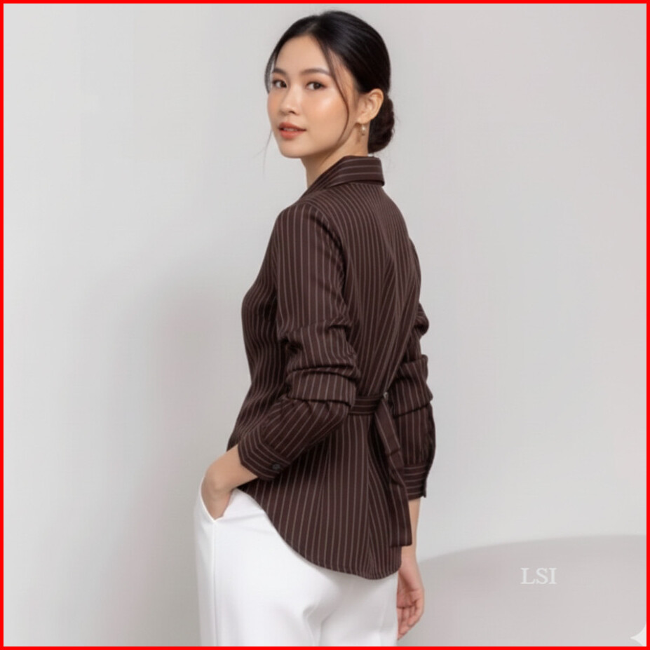 Luna Fitted Shirt Kemeja Blouse Wanita Korean Look Ootd Atasan Stripe Kerja Kantor Formal Slim Fit