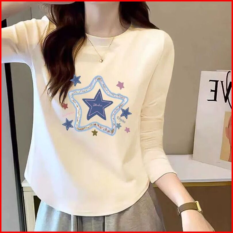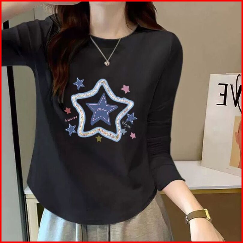Baju Oblong Wanita Lengan Panjang Bahan Spandek Distro Printing Premiun Atasan Baju Kasual T-shirt