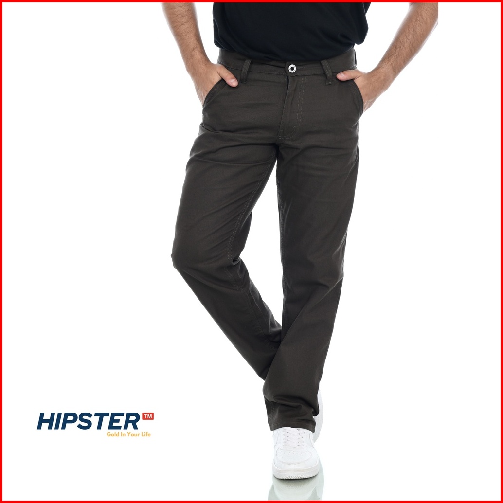 Hipster Celana Panjang Chino Basic Standar Pria Warna Abu Tua