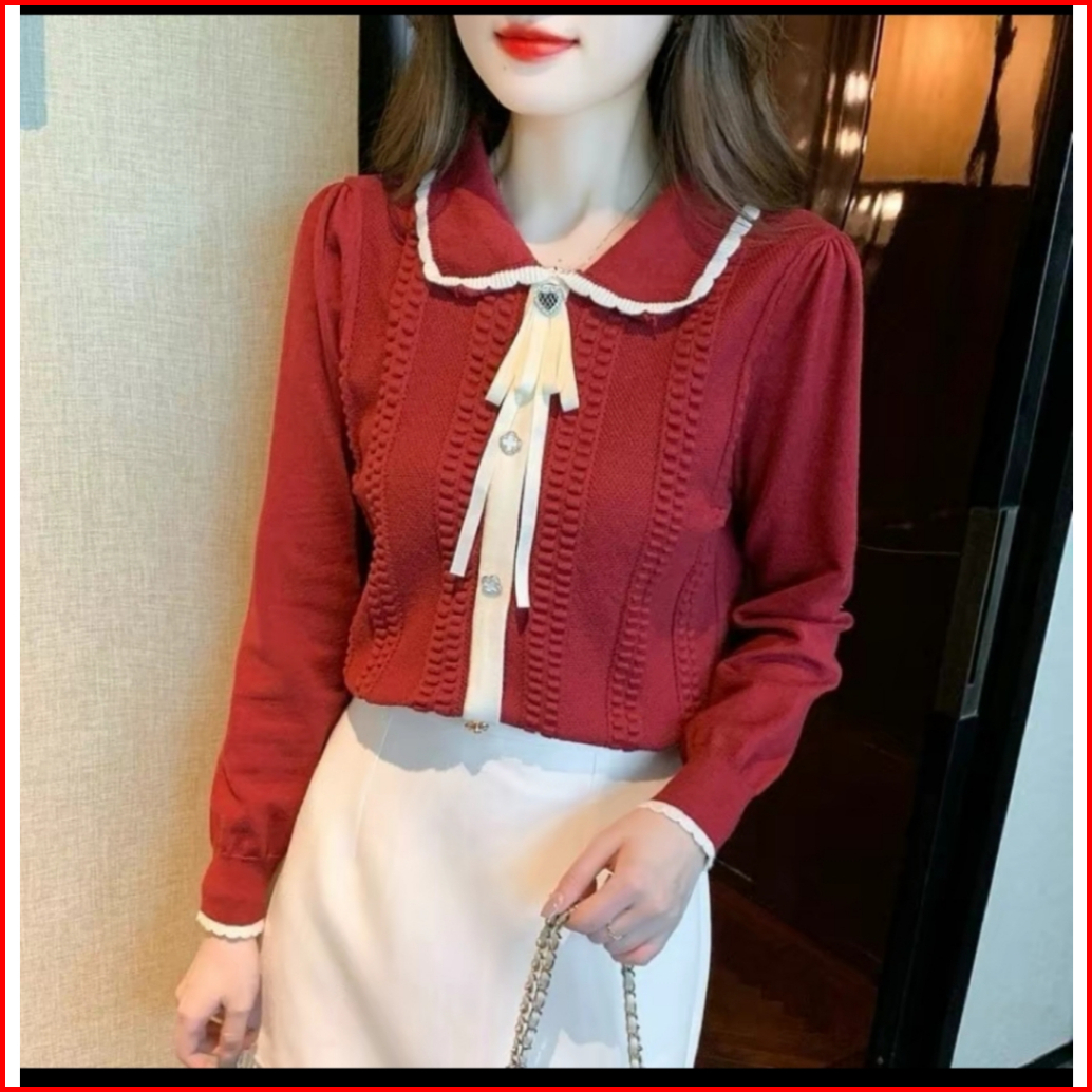 Baju Atasan Wanita Sailor Korean Style - Blouse Wanita Sailor Knit Lengan Panjang