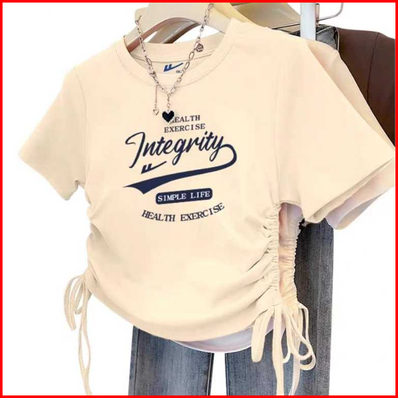 Tshirt Integrity Baju Serut Wanita Crop Top Baju Kaos Wanita Kekinian - Baju Wanita Atasan