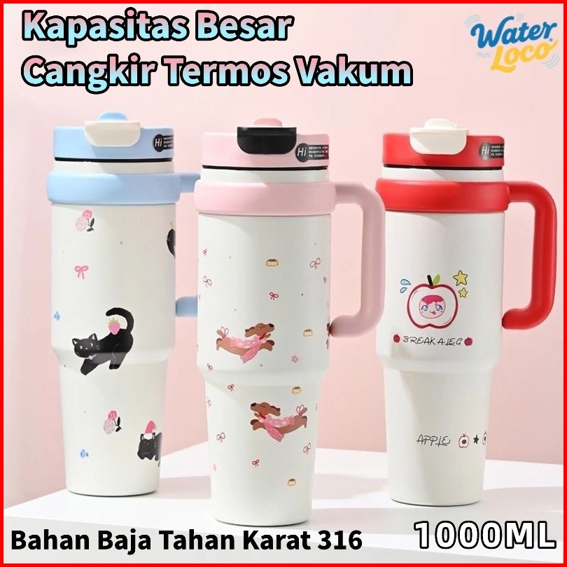 Waterloco 1000ml Tumbler Vakum Stainless Steel 316 Portable Kapasitas Besar Termos Aesthetic Tahan Panas Dingin 24 Jam B