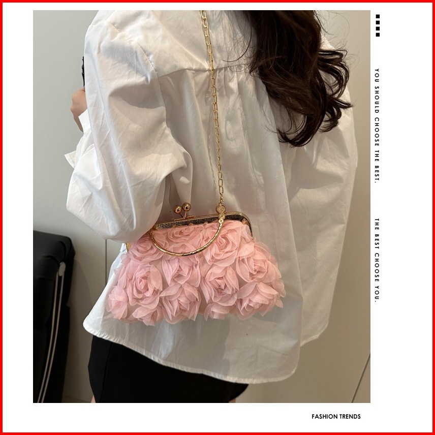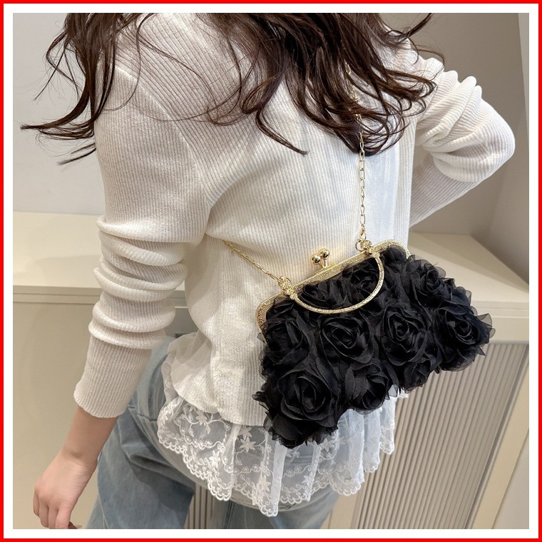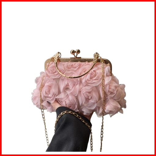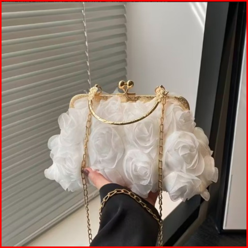 Mamasilo Rose Clutch Bag Tas Wanita Bunga Mawar Dengan Tali Panjang Rantai
