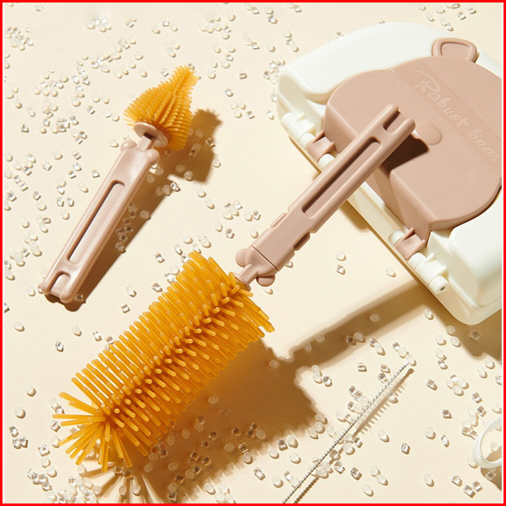 Set Sikat Botol Susu Bayi 6in1 Dengan Rak Pengering Botol Portable Bottle Brush Set Drying Rack Bear Travel Br C1069