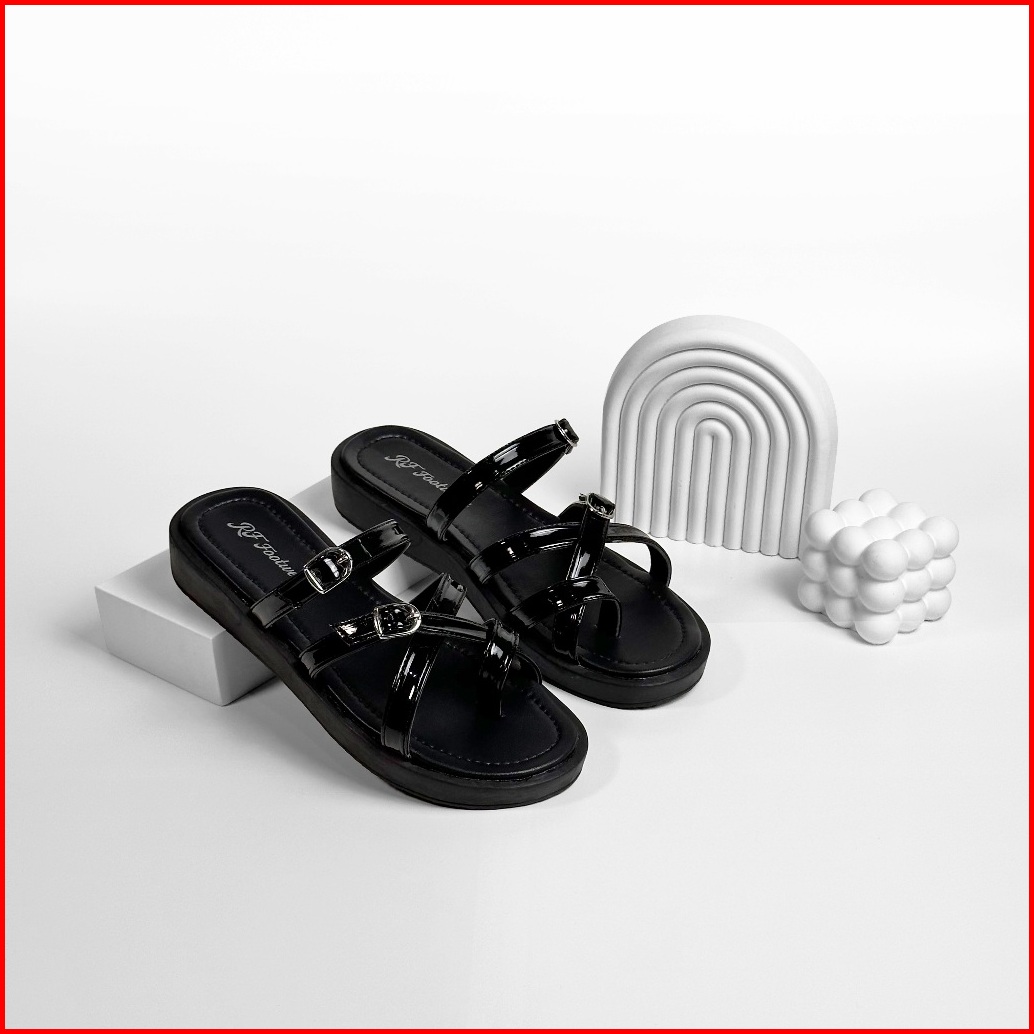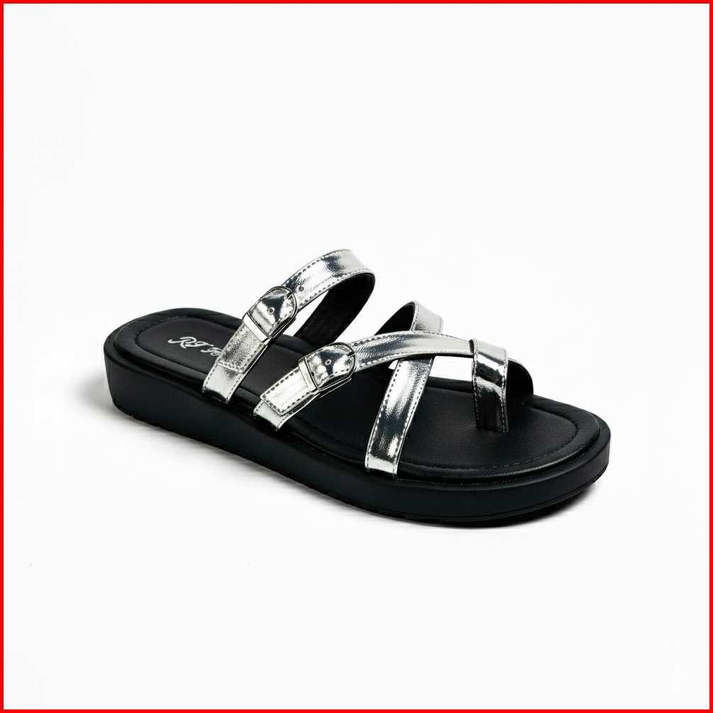 Rf Footwear - Sandal Platform Wanita Kekinian Terbaru Casual Tali Silver Glossy Jepit Hanna Series