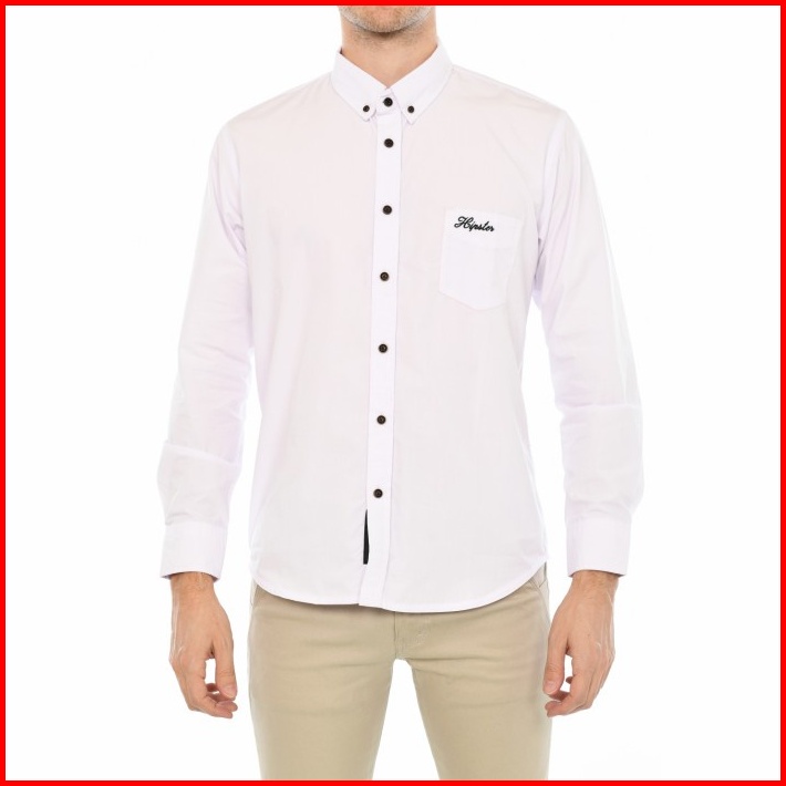 Hipster Kemeja Pria Lengan Panjang Polos Original Warna Putih