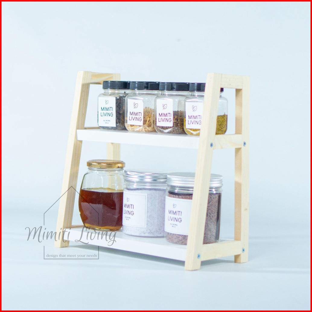 Rak 2 Susun Kayu Serbaguna Multifungsi Rak Bumbu Dapur Serbaguna
