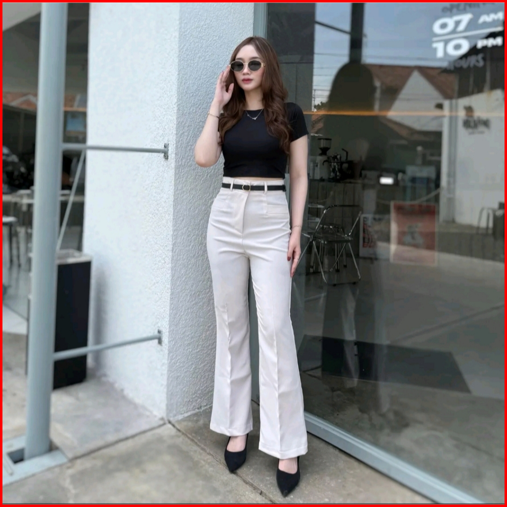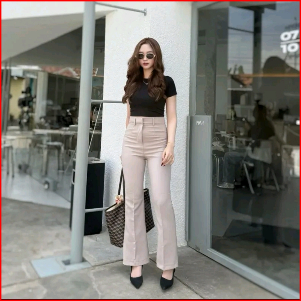 Kylie Cutbray Highwaist Pants - Cutbray Flare Pants Wanita - Highwaist Kulot Cutbray
