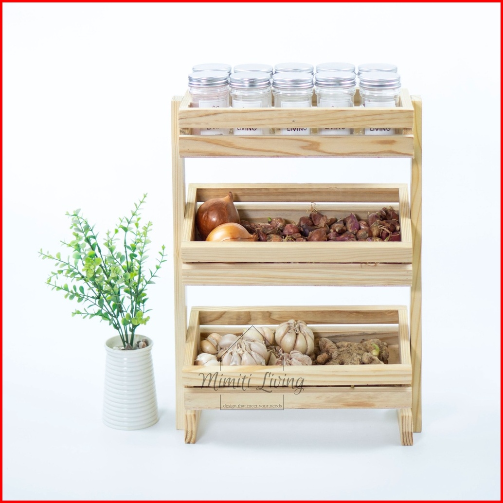 Rak Bawang 3 Susun Rak Bumbu Dapur Serbaguna Kayu