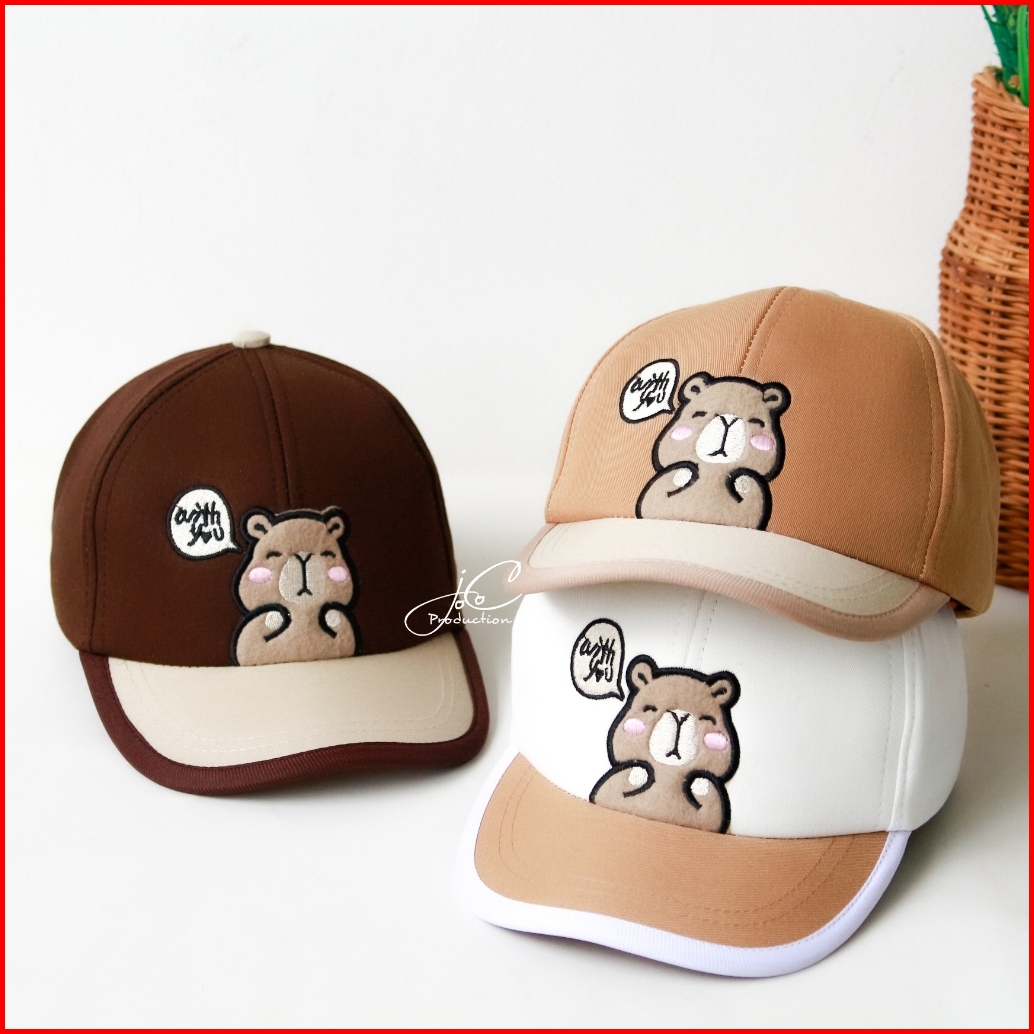 Jocoproduction - Topi Anak 3-7 Tahun Baseball Fashion Anak Premium Bordir Animal Capybara