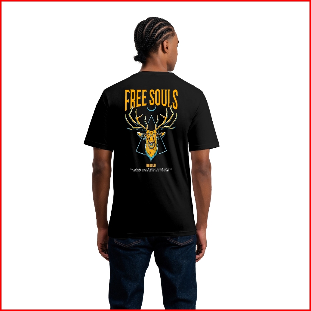 Kaos Pria Lengan Pendek Distro Freesouls Ribsgold Tshirt Cotton Katun Lembut Strech Grh