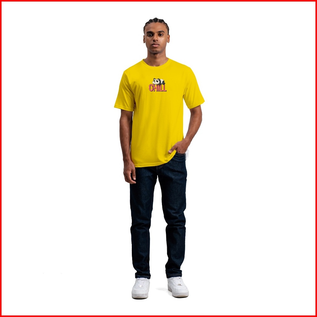 Ribsgold Kaos Pria Lengan Pendek Distro Pandachill Yellow Tshirt Cotton Katun Lembut Strech Grh