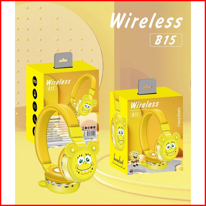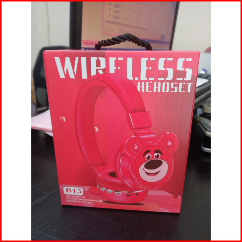 Headphone Bando Bluetooth Wireless Karakter Seri B15 Lotso Mickey Spongebob Winnie Pooh So Cute Imut