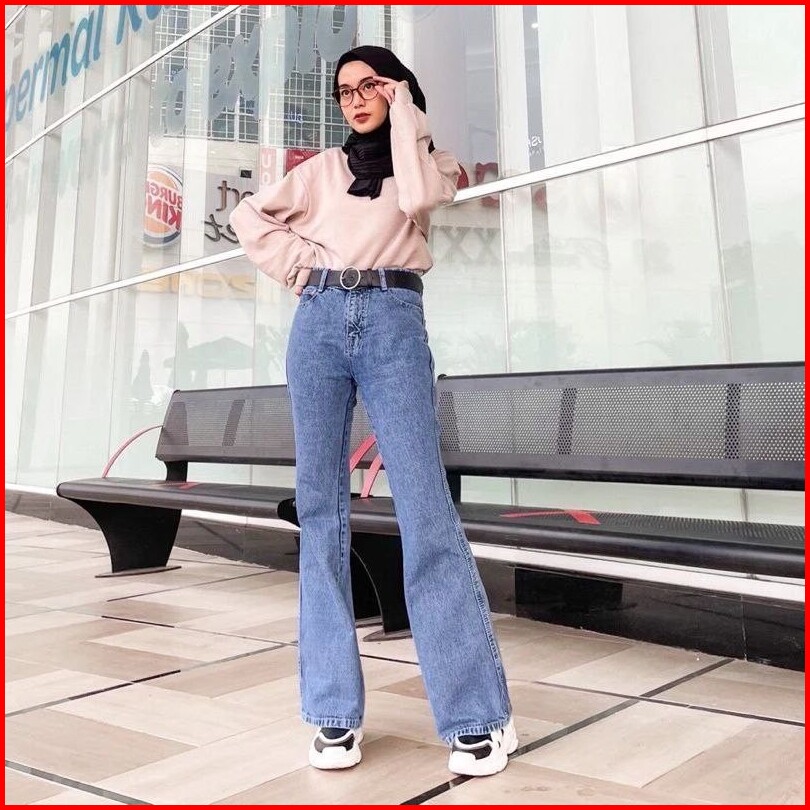 Celana Jeans Cutbray Wanita Highwaist Street Loose Melar Premium Kekinian Terbaru