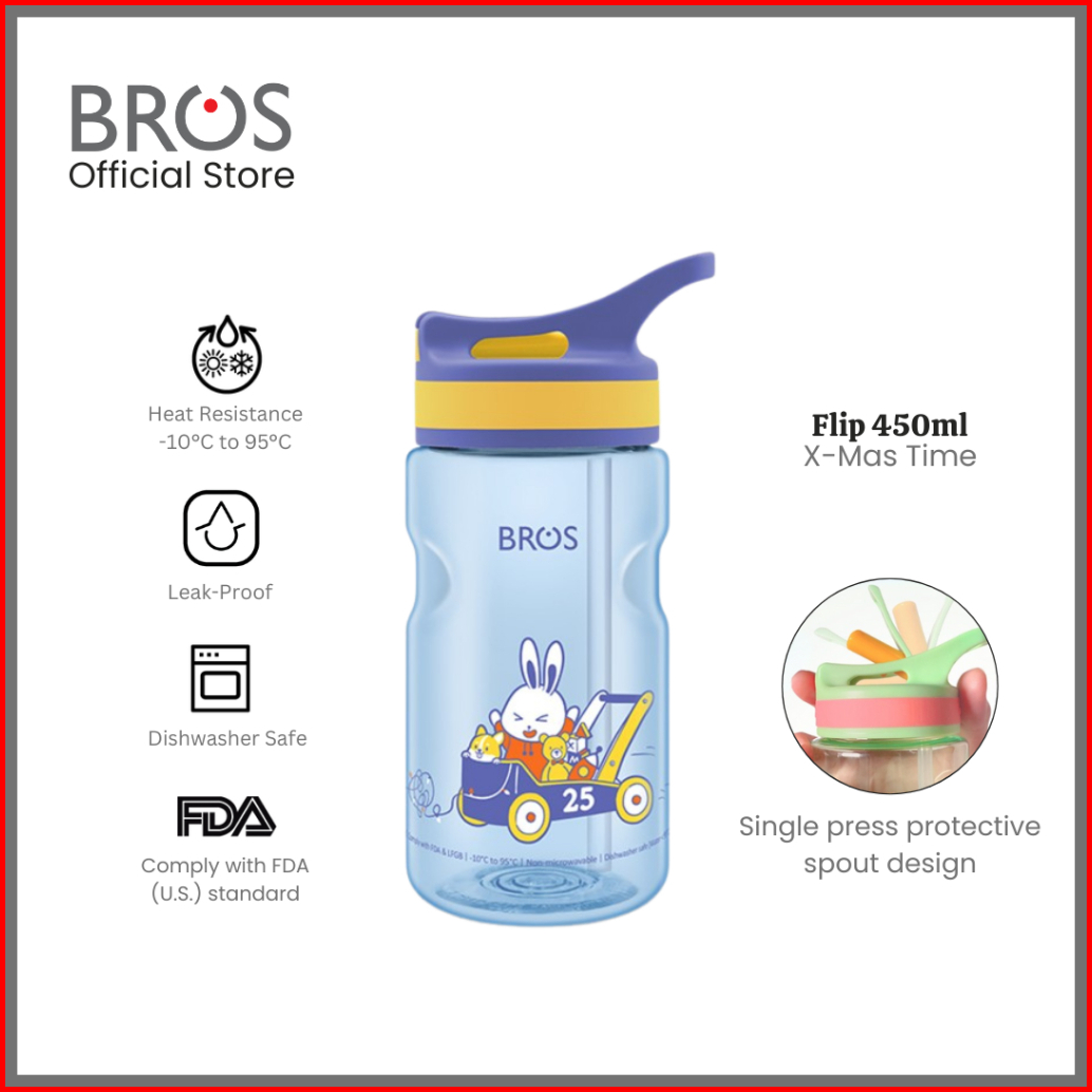 Bros Flip 450ml X- Time - Botol Minum Anak Sedotan