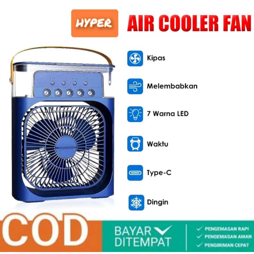 (Hyper) Kipas Penyejuk Pendingin Kipas Ac Mini Air Cooler Fan Portable Mobil-Ruangan Dingin Led