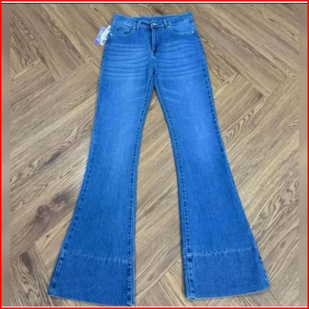 Jennie Highwaist Cutbray Jeans Celana Flare Panjang Strecht Lipat Bawah Premium