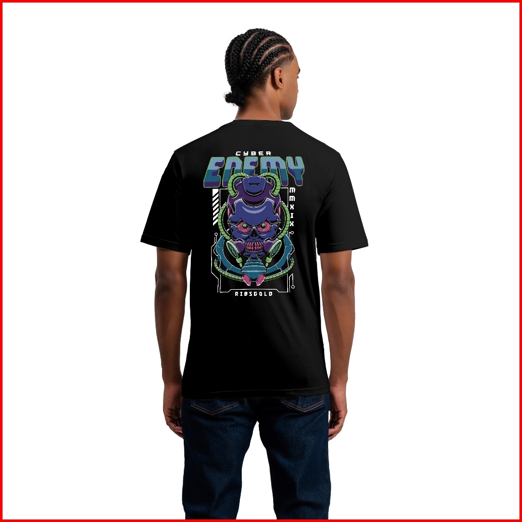 Kaos Pria Lengan Pendek Distro Cyberenemy Ribsgold Tshirt Cotton Katun Lembut Strech Grh